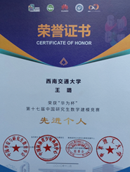 历届数学建模竞赛指导教师,指导学生共获得国家一等奖10项,国家二等奖14项,省奖26项。获得全国百名优秀数学建模指导教师荣誉,第十九届中国研究生数学建模“先进个人”荣誉称号。