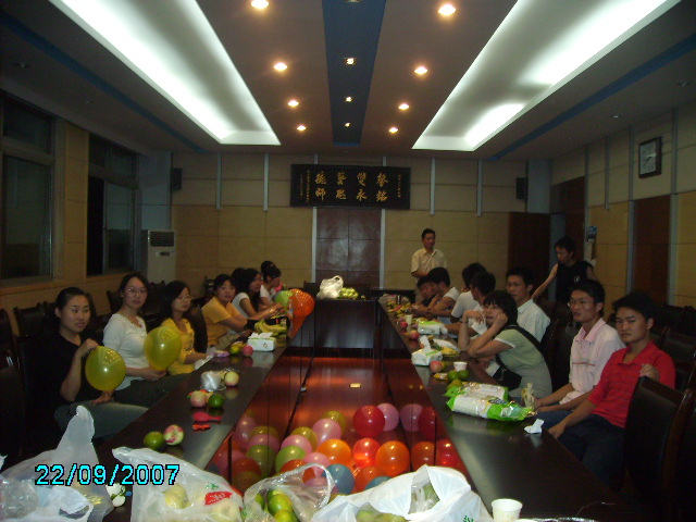20079248点半,研2007数学班相聚在数学系会议室兴高采烈地举行了中秋晚会。