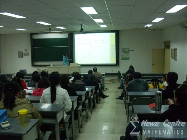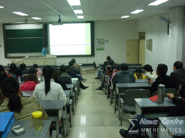 报告会开始后首先由主持此次报告会的赵海良老师讲话,他就专业课的完成、经典文献的阅读、参加学院组织的学术活动等方面,对在场的研一学生们提出了一些要求,并规定了下学期论文开题的时间和其中检查的时间。之后由黄天民老师为大家讲解有关代数学方面的研究。黄老师就近世代数,交换代数中的扩张、限制、开射、一些分解、求和、理想、环构造等知识做了一些讲解。休息一会后,由杨晓梅老师为大家做函数恒等式及其应用的论文报告。杨老师细致的为大家讲解了一些重要的恒等式,和一些相关知识如,微分方程的解、具有周期初始条件的一维热方程的唯一解、椭圆函数的关系。