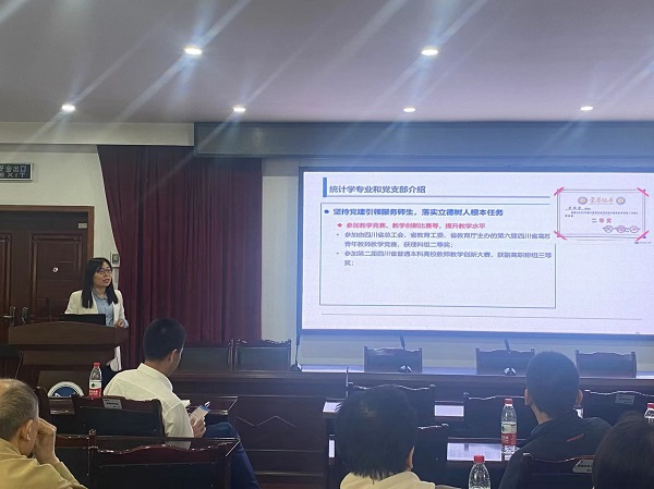 教工信息与计算科学系党支部书记何星星老师和教工统计系党支部书记乔高秀老师分别分享了党建工作经验与专业建设情况等,也邀请各学校的老师们能够到交大来交流合作。