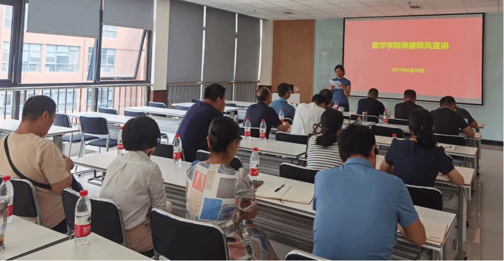2023年6月26日,成人直播 召开了师德师风教育宣讲会。学院党委徐革书记和杨晗院长,分别领学了《新时代高校教师职业行为十项准则》和《成人直播 教师师德失范行为负面清单》,鼓励教师坚定理想信念、陶冶道德情操、涵养扎实学识、勤修仁爱之心,树立“躬耕教坛、强国有我”的志向和抱负。