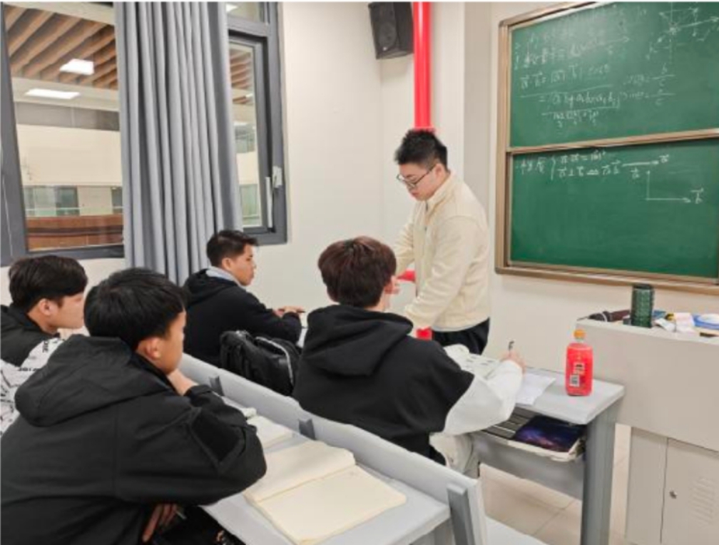 本科生党员赵彦通、胡丽君、李倪洲、刘心草、杨松凯、吴汪祺、卢春洋七名党员同学,为国际教育学院本科生开展《高等数学》《线性代数》课程辅导30余次,累计辅导时长逾百小时,国际教育学院留学生数学学习成效得到明显提升。用实际行动诠释了“朋辈帮扶共成长,青春建功正当时”的使命担当。
