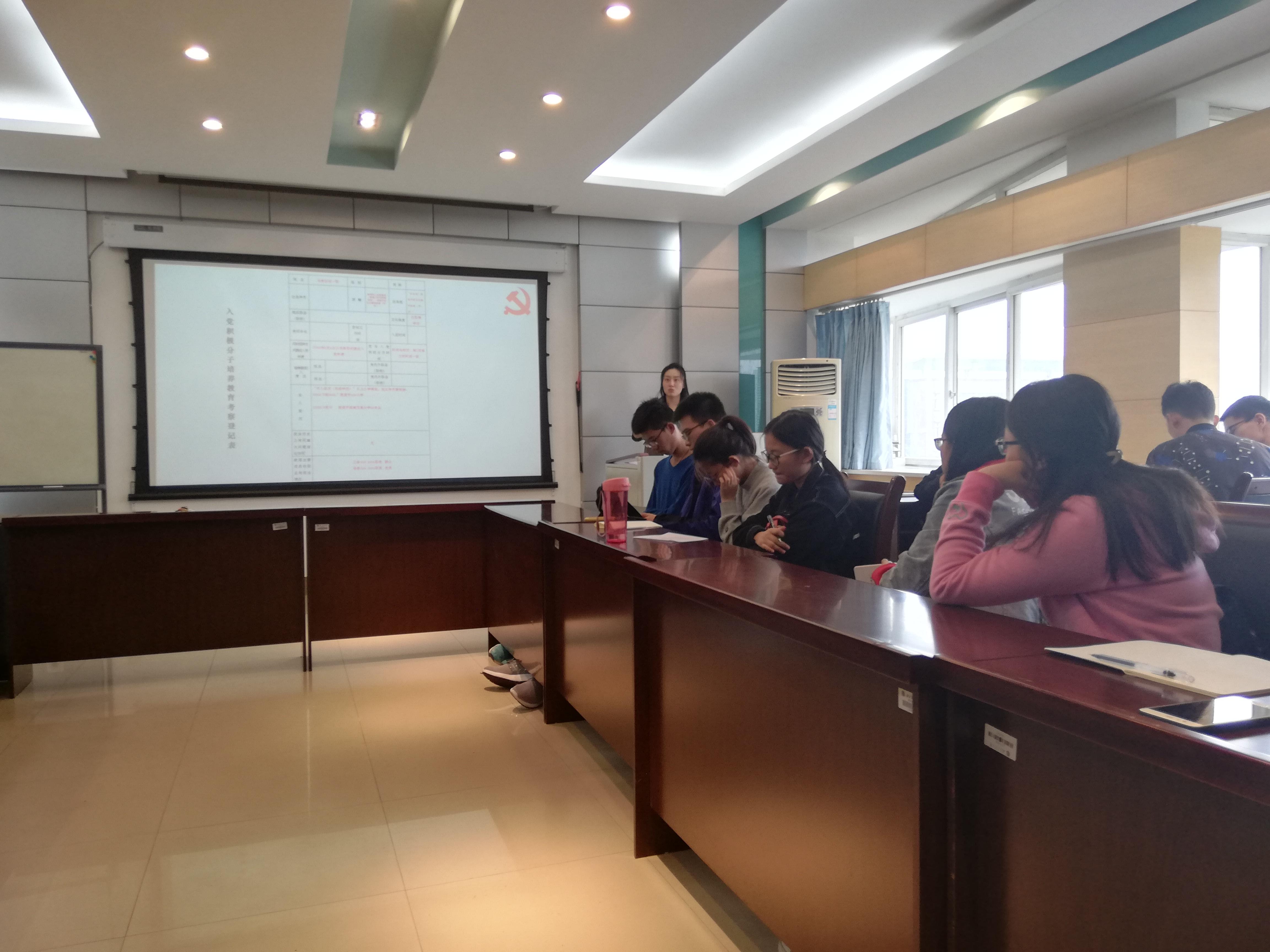 学工办主任兼学生党建指导老师卢怡帆老师主持,出席本次会议的有应数专业党支部书记孙昊,统计专业党支部书记张雁灵以及各班团支书和入党积极分子人员。