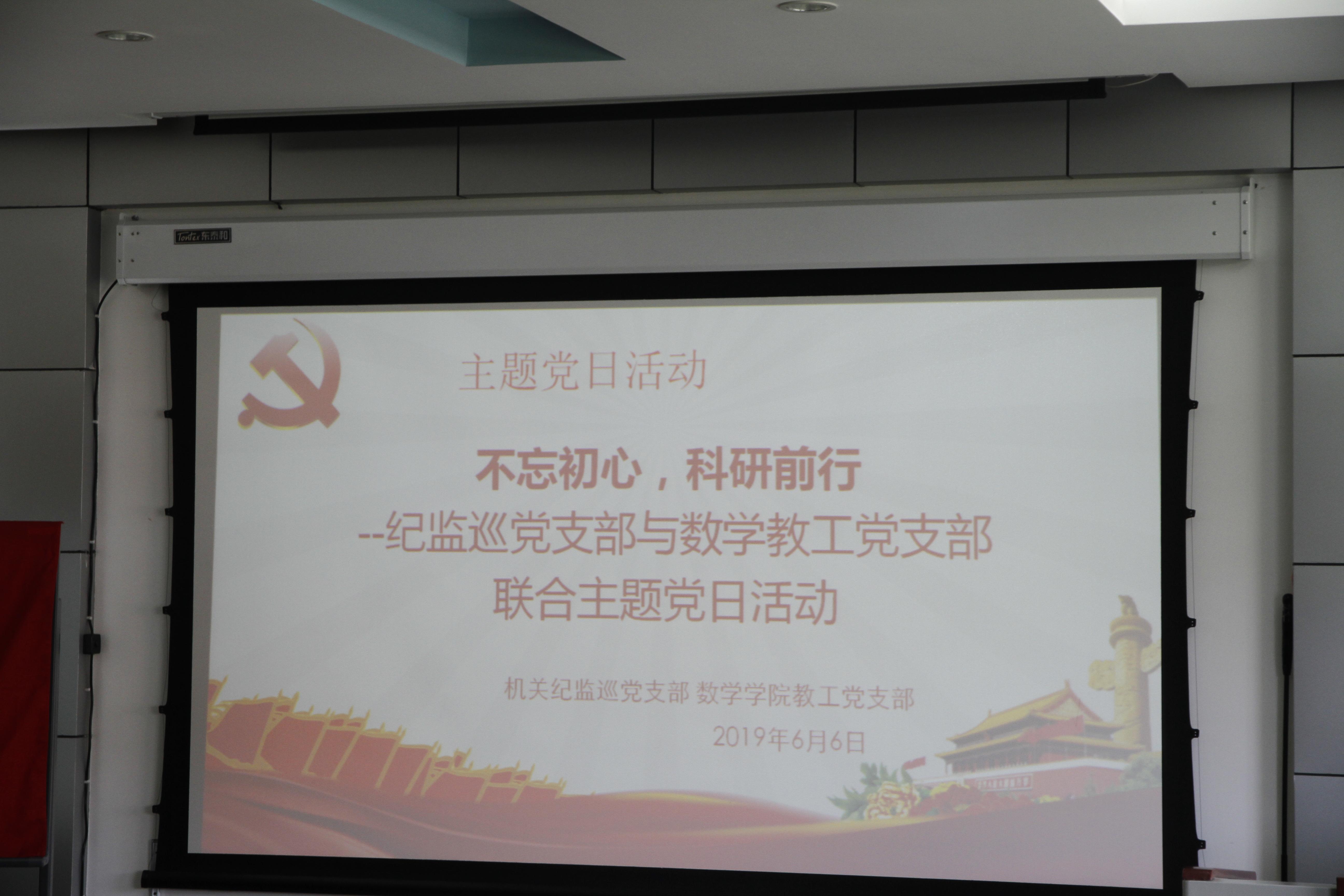 教工党支部和校机关纪监巡党支部联合主题党日活动在X2511会议室举行。本次党日活动的主题是“不忘初心,科研前行”。学校机关纪监巡党党支部参加活动的党员有党支部书记、学校纪委副书记、监察处处长吴晓雄,学校纪委副书记、纪委办公室主任李琦,正处级纪检监察员曹宏伟等、党支部组织委员、案件室主任秦文臻等;成人直播