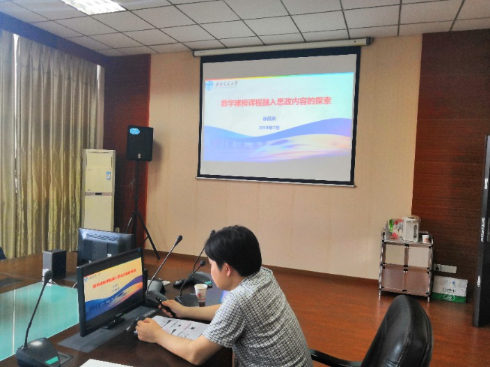 峨眉党小组的徐昌贵老师和大家分享了数学建模课程融入思政教学的经验和体会。徐老师结合两个经典教学案例——“最短路问题”和“旅行商问题”讲解了在建模课程中从问题引入、案例的选取和问题的深化等角度开展课程思政的具体做法。与会的老师们深受启发,就课程思政展开了交流讨论,纷纷表示在教学工作中将积极开展思想政治教育,主动将知识传授与价值引领有机统一,让枯燥的专业课教学更有温度,思想教育更有力度,实现立德树人的教学目标。最后围绕党支部建设,教学科研工作,社会服务管理等议题进行了热议,大家畅所欲言,献计献策,活动在热烈的掌声中结束。