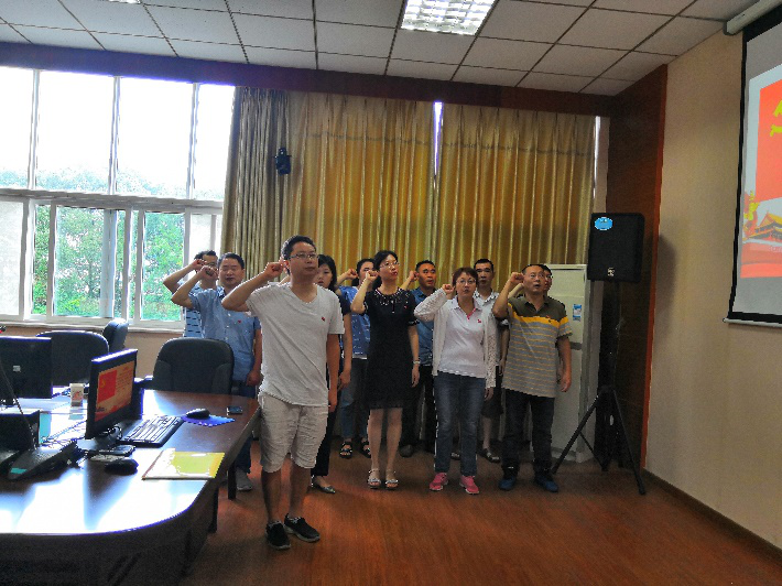首先全体参会党员进行了重温入党誓词的仪式,大家面向党旗,举起右拳,庄重宣誓,不忘入党初心,时刻铭记共产党员的责任感与使命感。接下来党支部书记冯颖向大家作了“课程思政的理念、方法与途径”的主题报告,详细介绍了课程思政的背景、理念、重要性以及方法和途径。着重分析了在专业课教学中如何梳理、挖掘、融入和渗透思想政治教育元素,帮助老师们树立正确的课程思政观,并鼓励大家在教学工作中积极探索和实践。