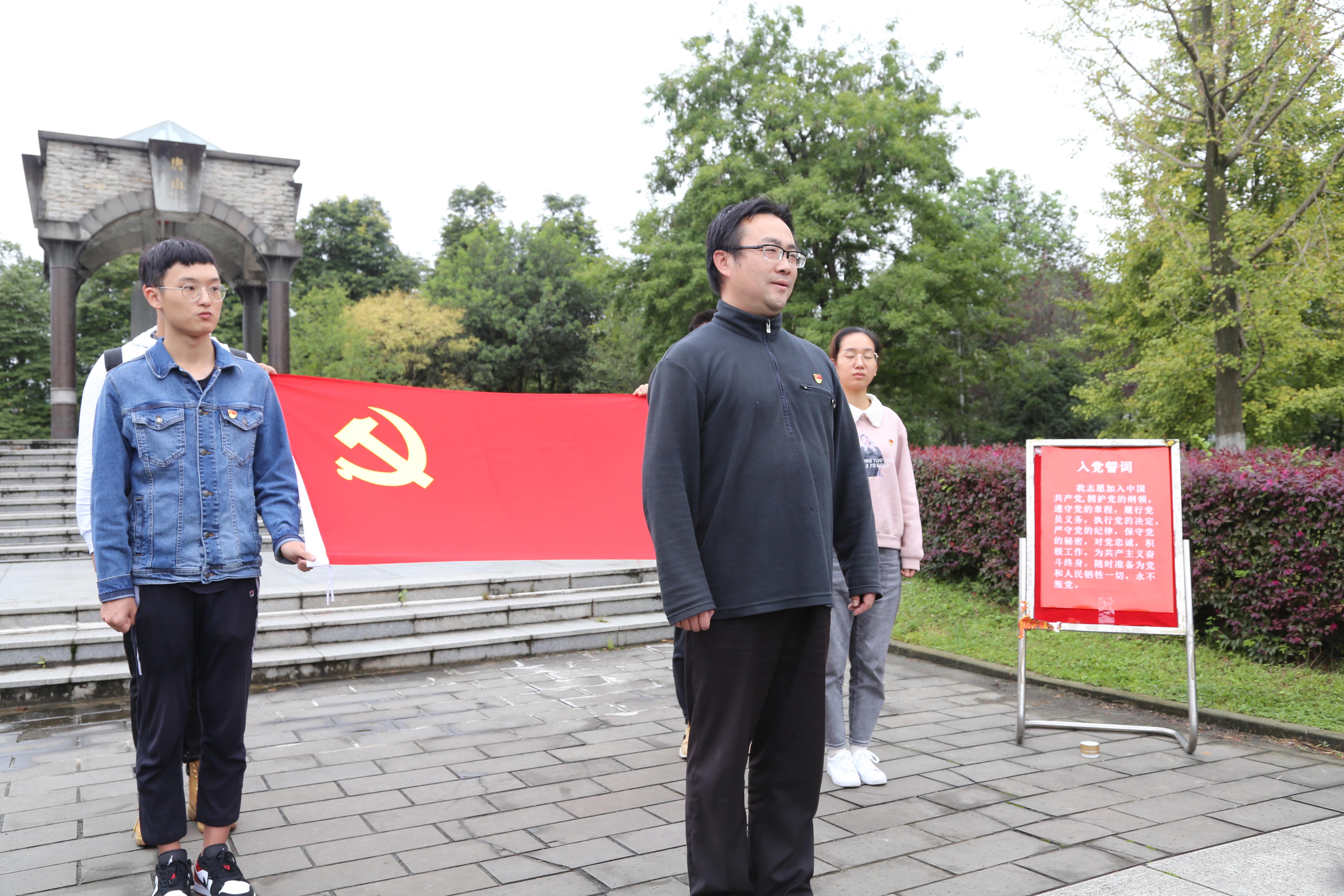 9月24日,数学与茅院分党校在钟亭园区举行入党宣誓活动。茅以升学院党总支书记甘霖、党总支副书记王霞、专职组织员孟涵、兼职组织员雷燕君,成人直播