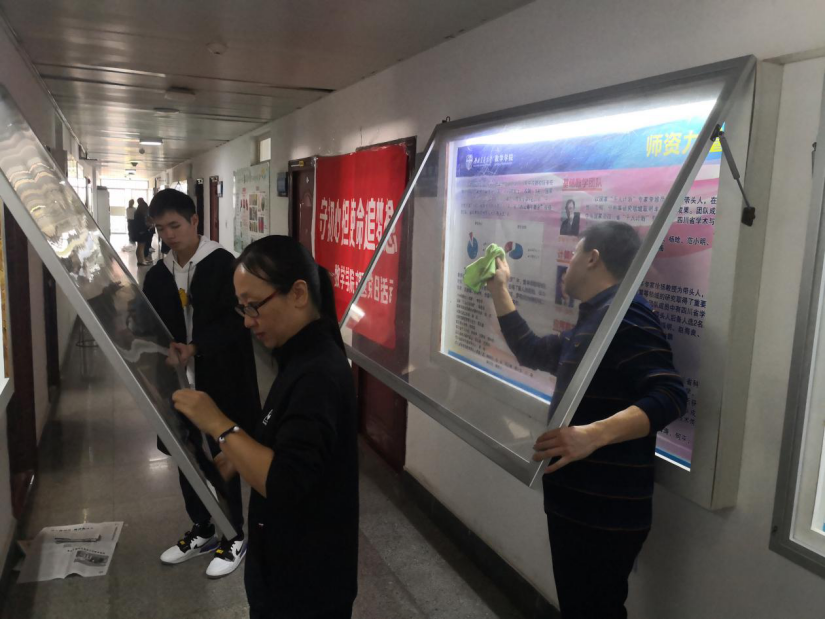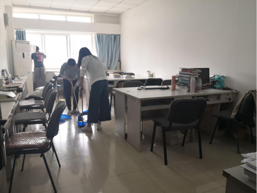 师生党员,对学院办公室、教师工作间、研究生研习室的室内外环境、橱窗及各个角落进行清洁打扫。在此基础上,学院还将为教师工作间等布置绿植进行美化。