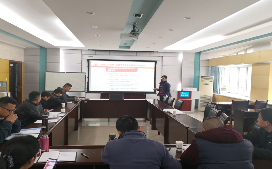 接下来徐革书记带领与会成员集中学习了党的十九届四中全会精神。党的十九届四中全会从党和国家事业发展的全局和长远出发,重点研究了坚持和完善支撑中国特色社会主义制度的根本制度、基本制度、重要制度,系统部署了推进国家治理体系和治理能力现代化需要重点完善的重大体制机制改革和需要推进的重点工作任务,深刻回答了“坚持和巩固什么、完善和发展什么”这个重大政治问题。全会通过的《中共中央关于坚持和完善中国特色社会主义制度、推进国家治理体系和治理能力现代化若干重大问题的决定》,深刻阐明了坚持和完善中国特色社会主义制度、推进国家治理体系和治理能力现代化的重大意义、总体要求、总体目标、重点任务和根本保证,是新时代坚持和完善中国特色社会主义制度、推进国家治理体系和治理能力现代化的政治宣言和行动纲领。