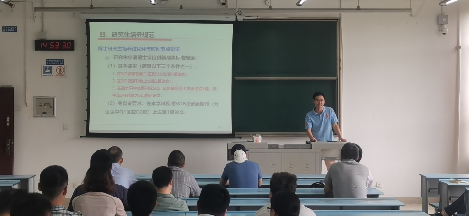 最后,杨洋鼓励大家齐心协力做好研究生的培养工作,并在最后答疑环节解决老师们的疑问。
