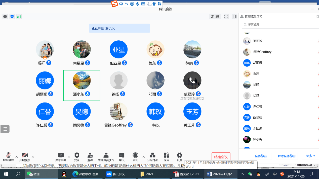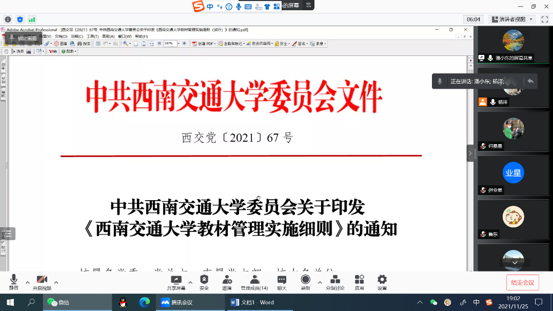 信息与计算科学系党支部通过腾讯会议(会议 ID:812-645-493)召开支部学习会议。潘小东副院长给老师们解读了[西交党[2021]67号_中共成人直播