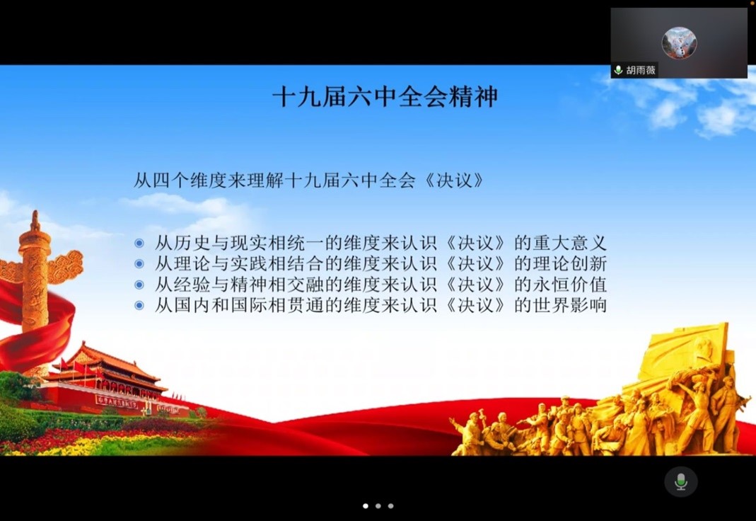 会议最后,由宣传委员胡雨薇带领大家一起学习十九届九中全会的精神,通过学习,使支部党员更加的深刻认识到没有共产党就没有中国人民的幸福生活,就没有中华民族的伟大复兴,更加坚定了跟党走中国特色社会主义道路的信心和决心。本次会议圆满结束。