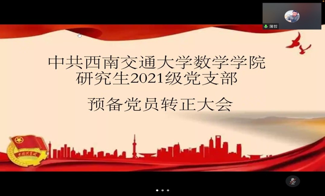 2021级研究生党支部在线上会议举行了蒲哲同志预备党员转正的党支部会议,本次会议由党支部书记王乐主持。