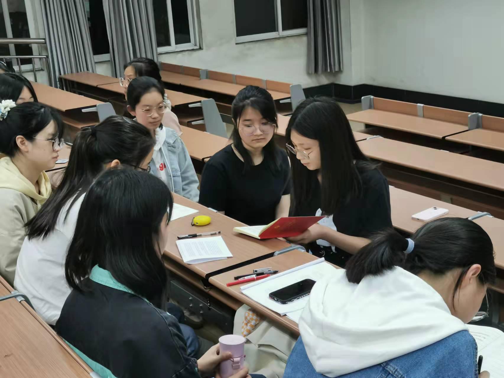 听完了胡雨薇同志的领学,大家收获颇多,展开了热烈的讨论,学习氛围浓厚。王安同志迫不及待地说道:“在学习过程中,我经常会遇到问题,只要一想到我们所生活的盛世,所肩负到的重任,忽然就有了力量,去战胜这些困难。”吴孟桃同学赞同道:“我们未来的前进道路上必然会有艰巨繁重的任务,必然会有艰难险阻甚至惊涛骇浪。越是接近民族复兴的目标,我们越不能懈怠,越要加倍努力,越要为之奋斗。”