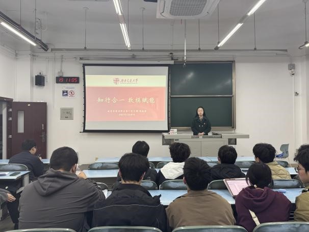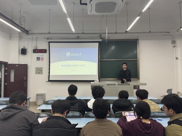 的三名优秀学生逐一开展经验分享互动。杨越溪同学以“知行合一·数模赋能”为题,详细介绍了参赛前的准备工作,着重指出掌握基础技能的重要性,并激励同学们勇于跳出“舒适区”,将竞赛视为提升自我的实践平台,做到以赛代练、实现以赛促学;栗子潮同学从专业视角出发,明晰了“建模手”与“算手”的关键职责,详细列举了必需的专业课程及核心模型,并通过剖析常见误区,为同学们提供了宝贵的实用技巧与避坑指南;王嘉泽同学聚焦于论文撰写技巧,从论文的框架搭建、书写规范等方面做了详细分享,并辅以生动的实际案例,深入浅出地进行了剖析与解读。