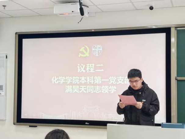 辅导员出席会议,化学及数学两院三支部全体党员、入党积极分子代表参加。会议由化学学院学生工作组副组长、团委书记孔维东主持。