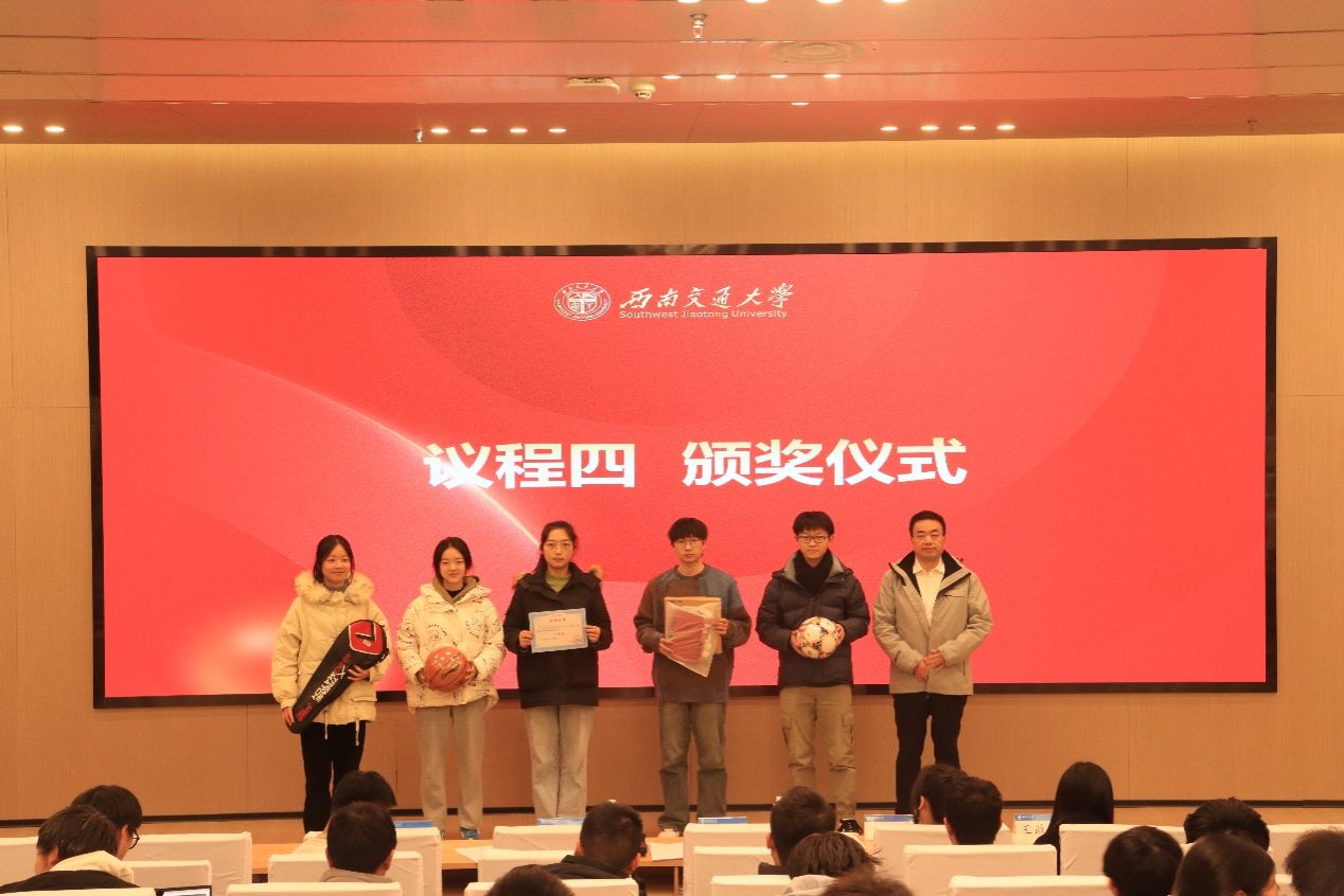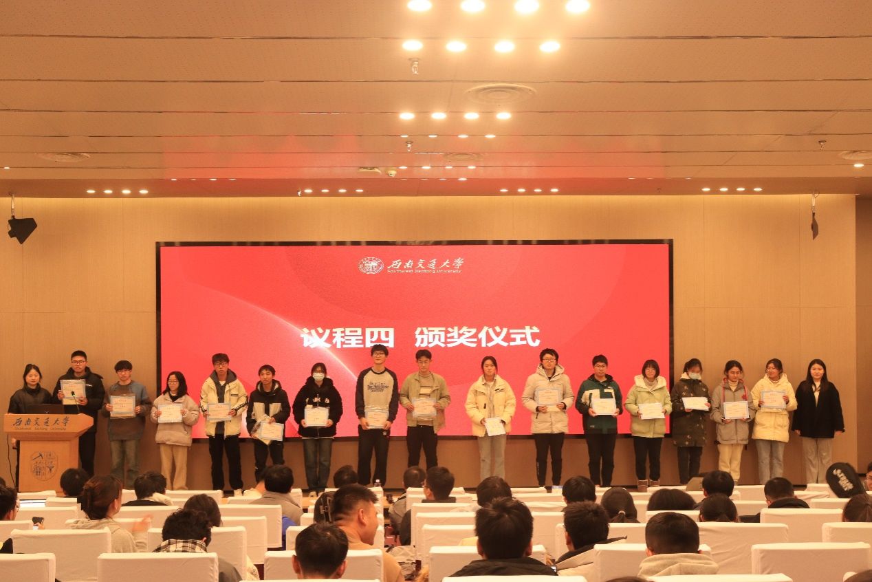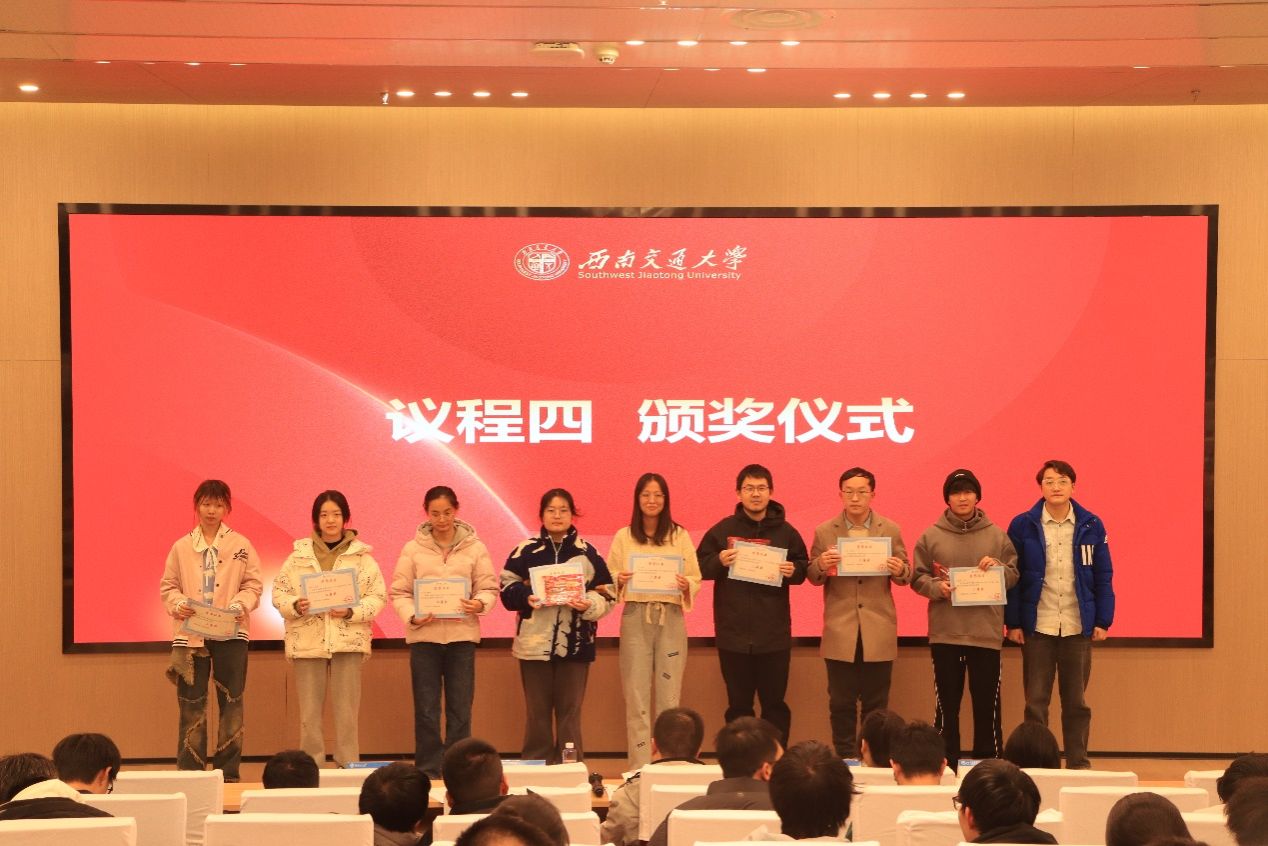 随后进行的是晚自习及课堂优秀集体和个人表彰仪式。统计2023-02班获集体一等奖;统计2023-01班、大数据2023-01班获集体二等奖;数学(拔尖)2023-01班、数学2023-01班、数学2023-02班获集体三等奖。在个人奖的评选中,曾品柯、魏旭玥、王蓉萱同学获一等奖;武泓秀、刘彦松、魏宇航等8名同学获二等奖;王皓萱、蔡安炀、张棋等45名同学获三等奖。黄祥书记、周义杰老师、吕薇老师、王政慧老师为获奖班级代表及获奖个人颁奖并合影留念。