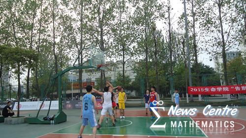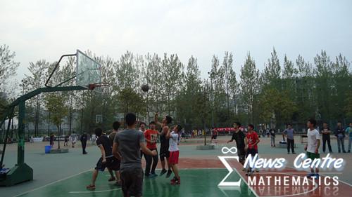 篮球赛在北区体育场热力上演。今天的比赛共有两场,分别是大四和大三统计专业对垒,大二应用数学专业二班和大三计算机专业比拼。