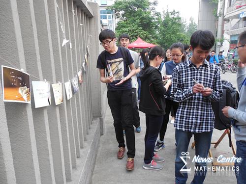 展示出来的一幅幅美好的春日图景吸引了许多人的目光,同学们都积极地参加到了评选的活动中来,数学传媒的成员们也积极地向同学们宣传了本次活动的内容,投票现场十分热闹。