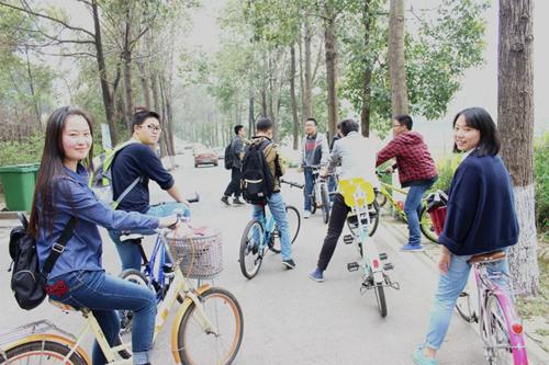在三圣乡的幸福梅林自由活动在并吃过素食后,全班同学租借了自行车,从幸福梅林骑车到白鹭湾湿地公园,分组在湖边、草地清理垃圾。最后大家在租借自行车的地方集合,一起返回校园。
