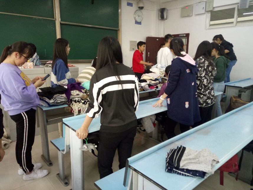 10月24日晚上9时30分,活动人员分别前往已经宣传过的寝室楼收集旧衣服。不少同学早已经收拾好了衣物等待着活动人员去收取,他们在递过衣物的同时还不忘贴心的说上“辛苦了”三个字,这三个字就像一泓清泉滋润了活动人员的心田,扫去了活动人员的疲惫,让活动人员更加开心的投入到工作当中。也有一些同学现场收拾了闲置的旧衣物捐赠了出来。这无疑是贯彻了可持续发展理念,赋予了旧衣物新的价值,也推动了此次活动顺利进行。