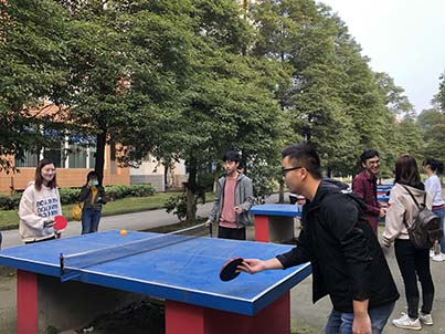 研究生乒乓球赛在犀浦校区天佑斋三号楼旁的乒乓球场正式开始。