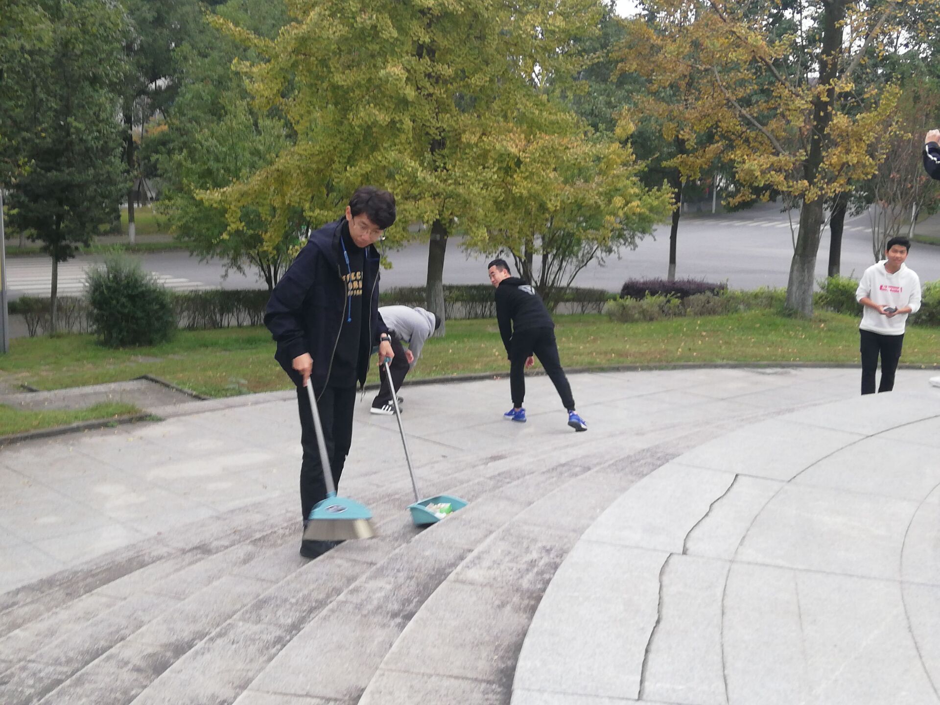 为了提高班级凝聚力,增进同学之间的友谊,丰富学生课余生活,统计一班开展了为期半日的打扫钟亭及素质拓展活动。