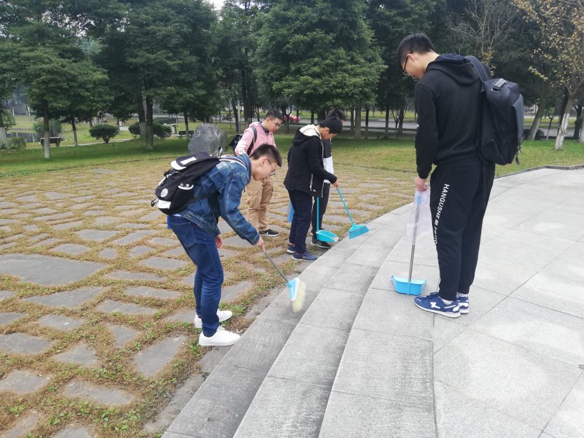为了增强班级的凝聚力,促进同学们的交流,统计二班全体同学于11月4号八点半在交大的标志性建筑——钟亭开展了打扫及素质拓展活动。