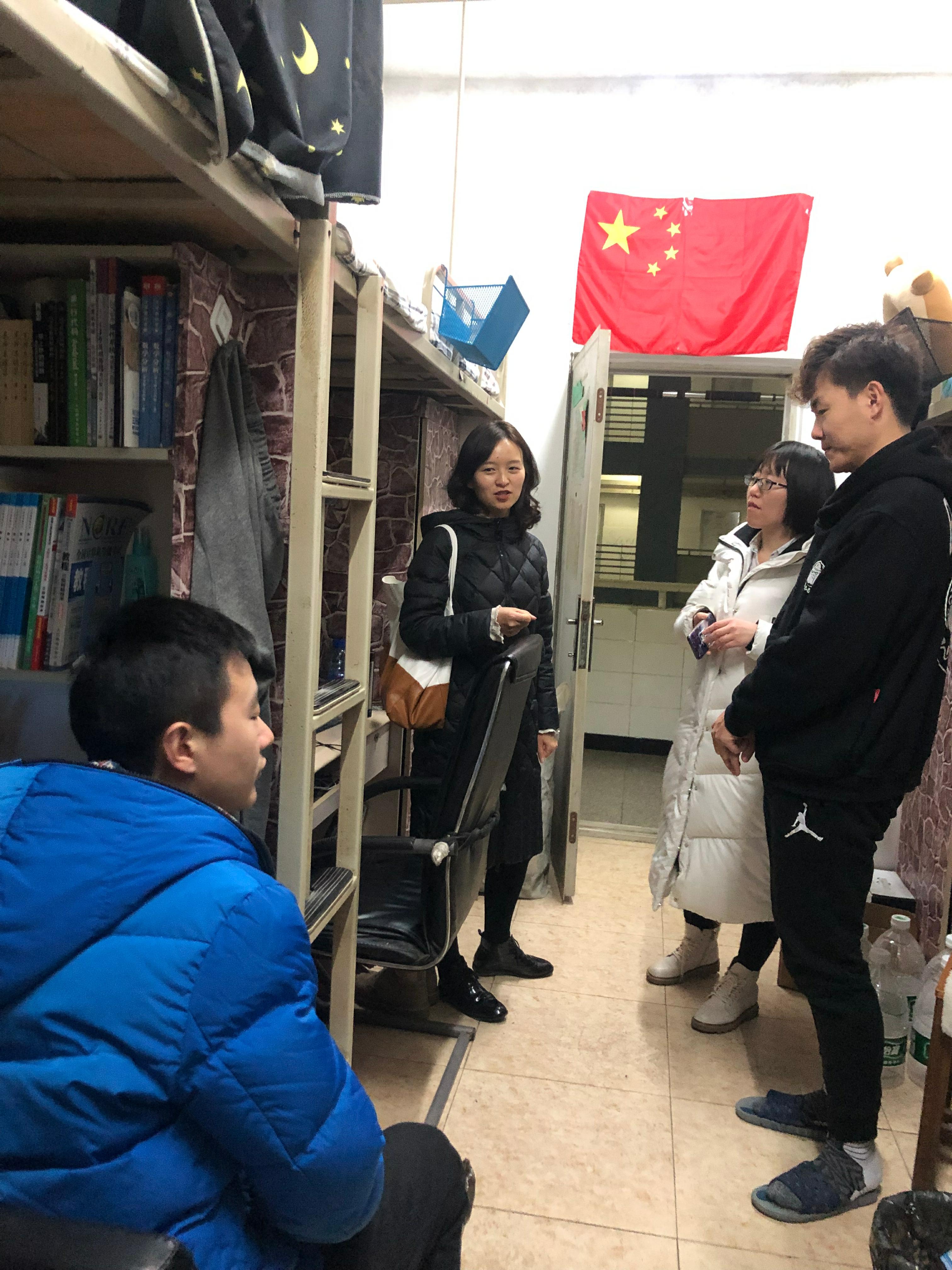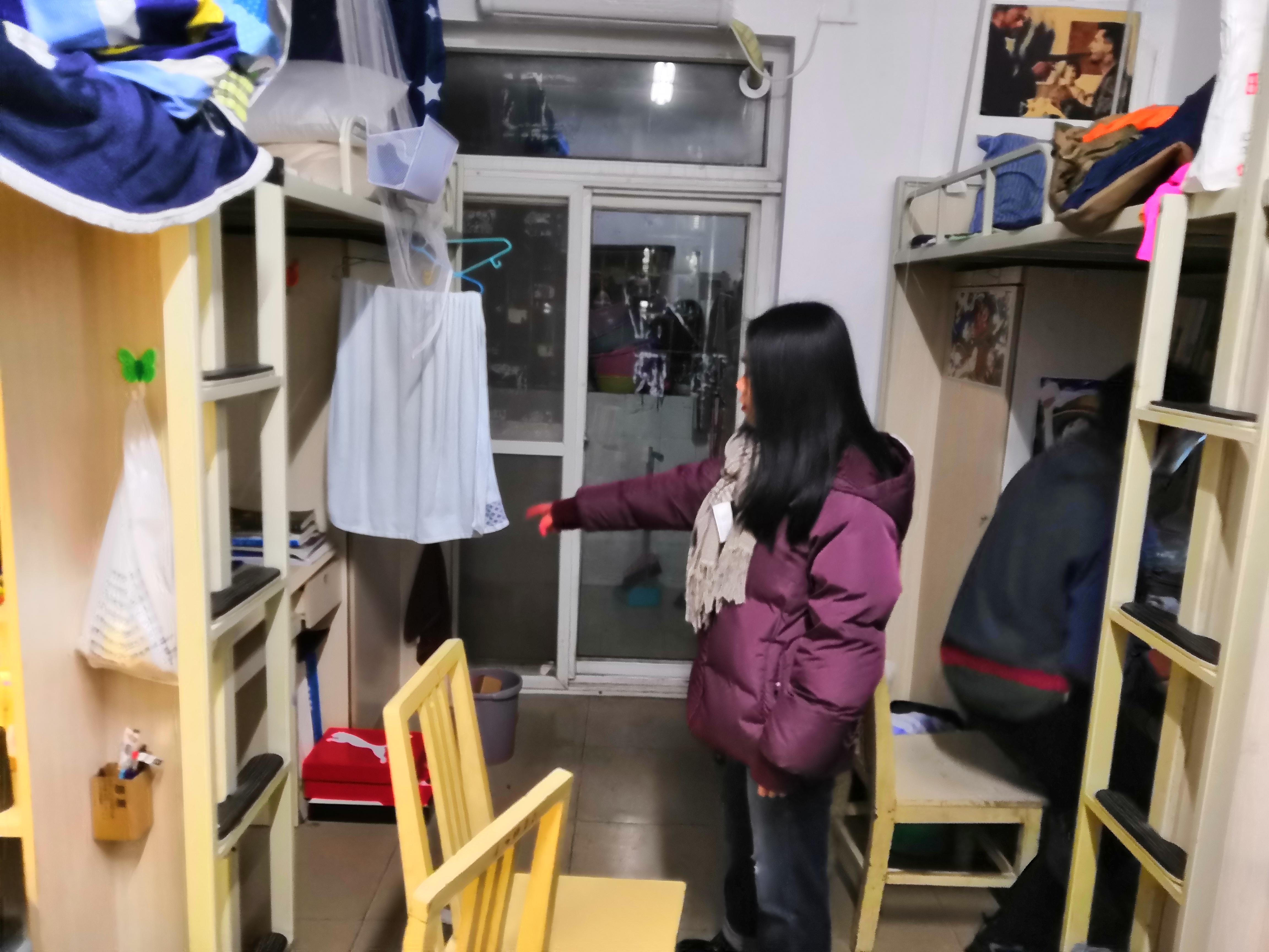 2月24日傍晚时分,成人直播 团委书记邓思然老师、16级和18级辅导员钟义婷老师、17级辅导员谢童心老师、15级辅导员李思佳老师为确保新学期学生们的返校安全和了解寝室的整体卫生情况分别对成人直播 四个年级学生的返校情况进行了视察。