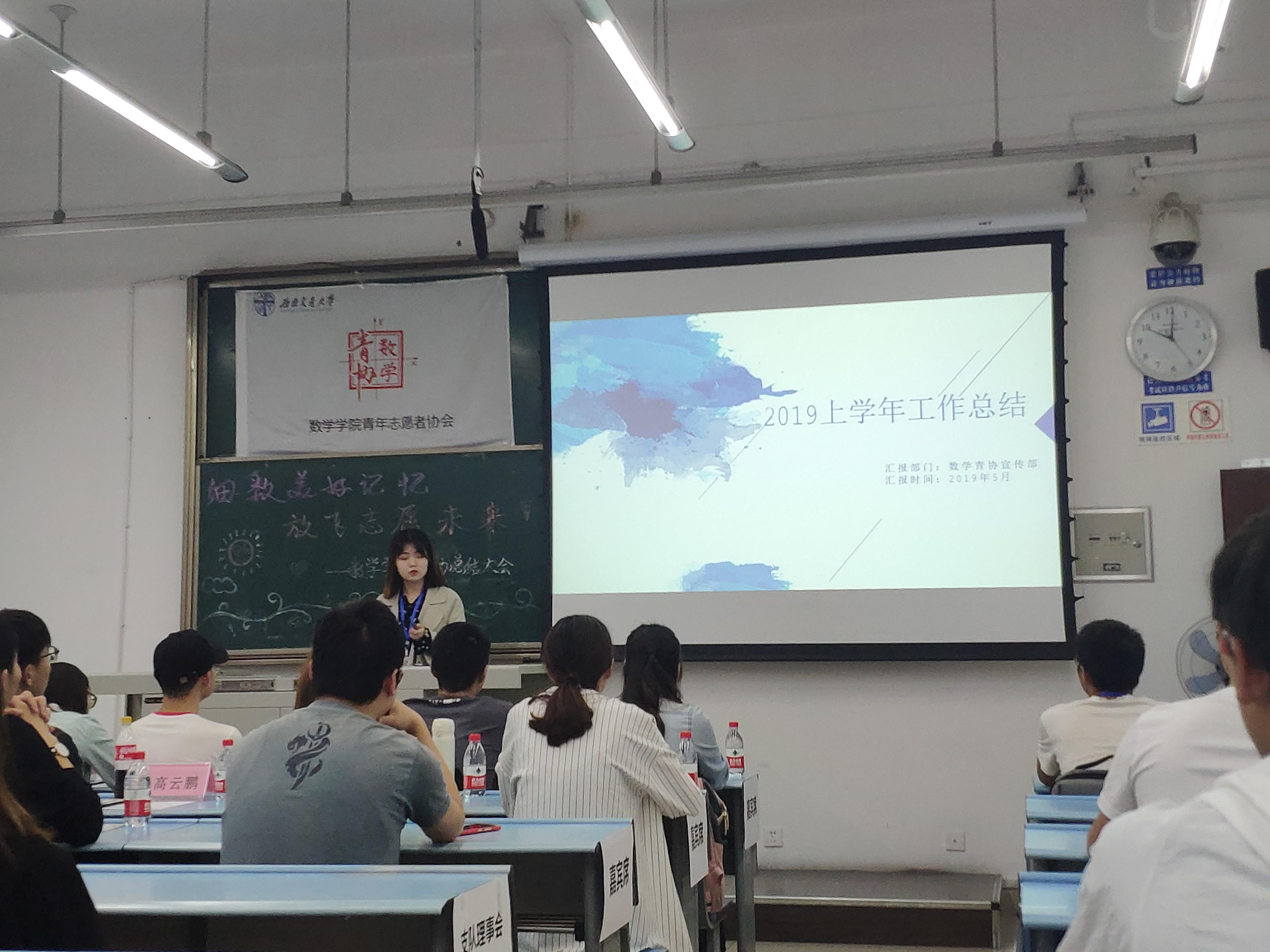 青年志愿者协会2018—2019学年第二学期总结大会在X2423教室隆重举行。本次青协总结大会以“细数美好回忆,放飞志愿未来”为主题,希望回顾数学青协这一学期以来的美好点滴,同时鼓励数学青协的每一位志愿者能够不忘初心,坚守本心,牢记志愿者初衷,继续践行志愿者精神,成为成人直播