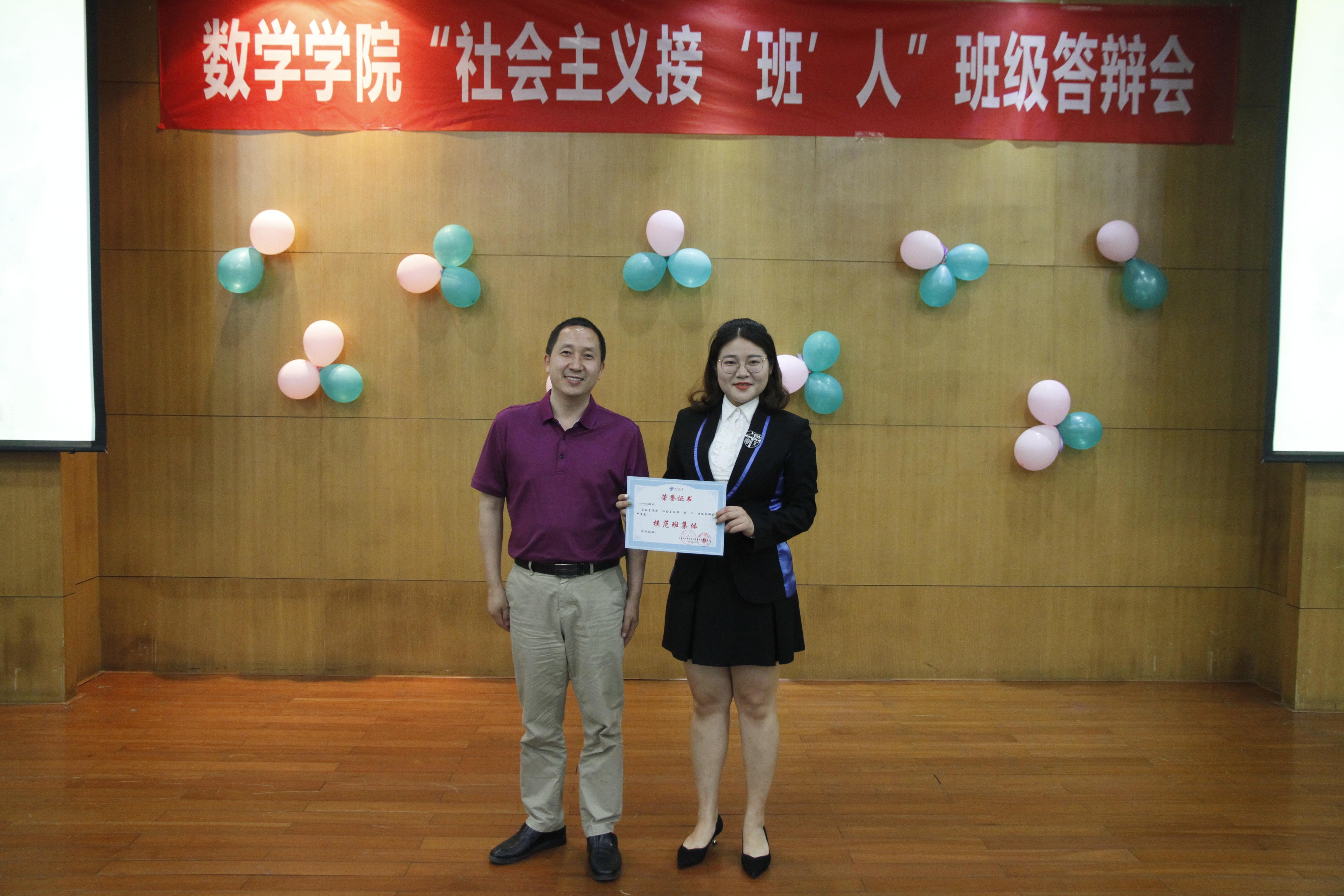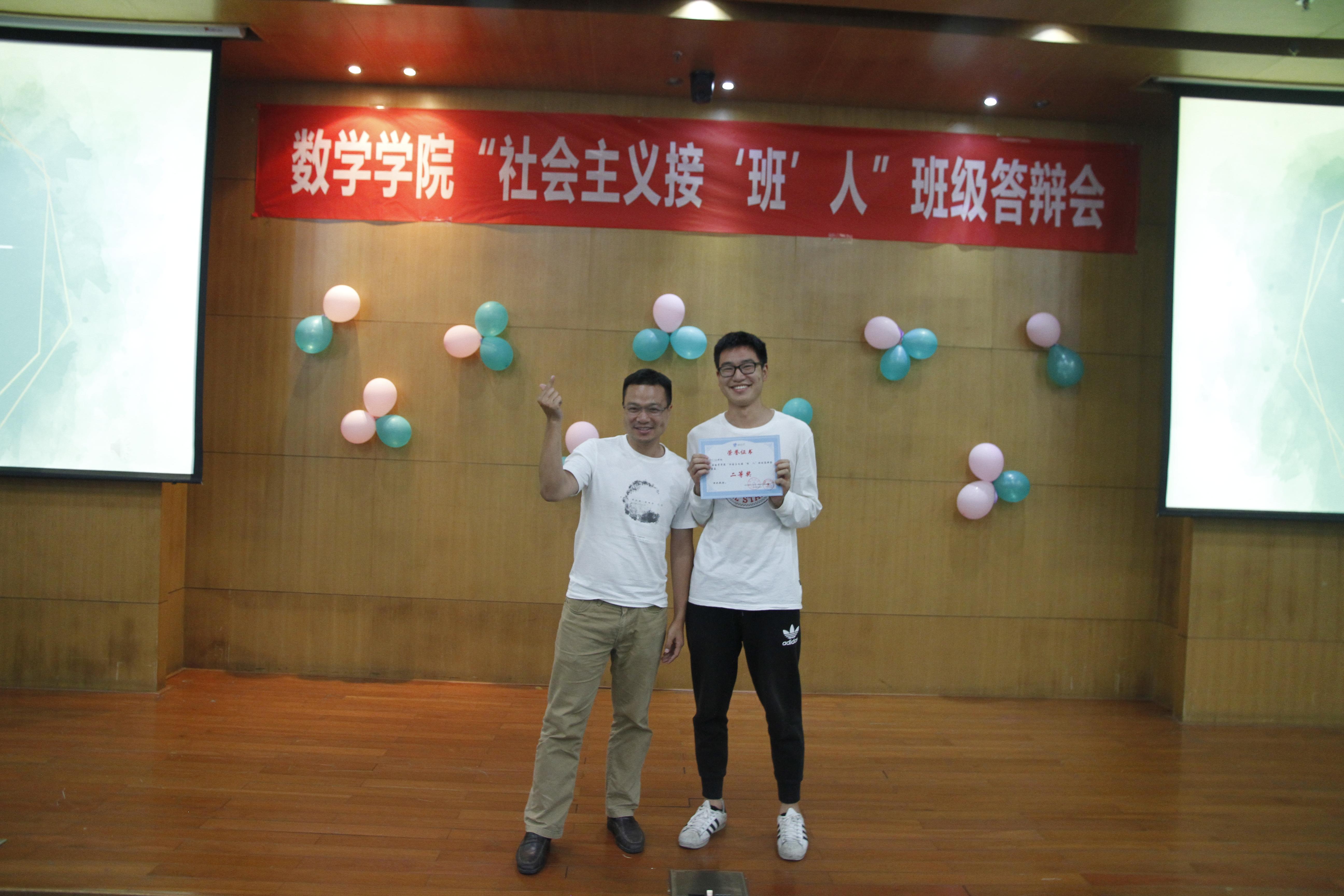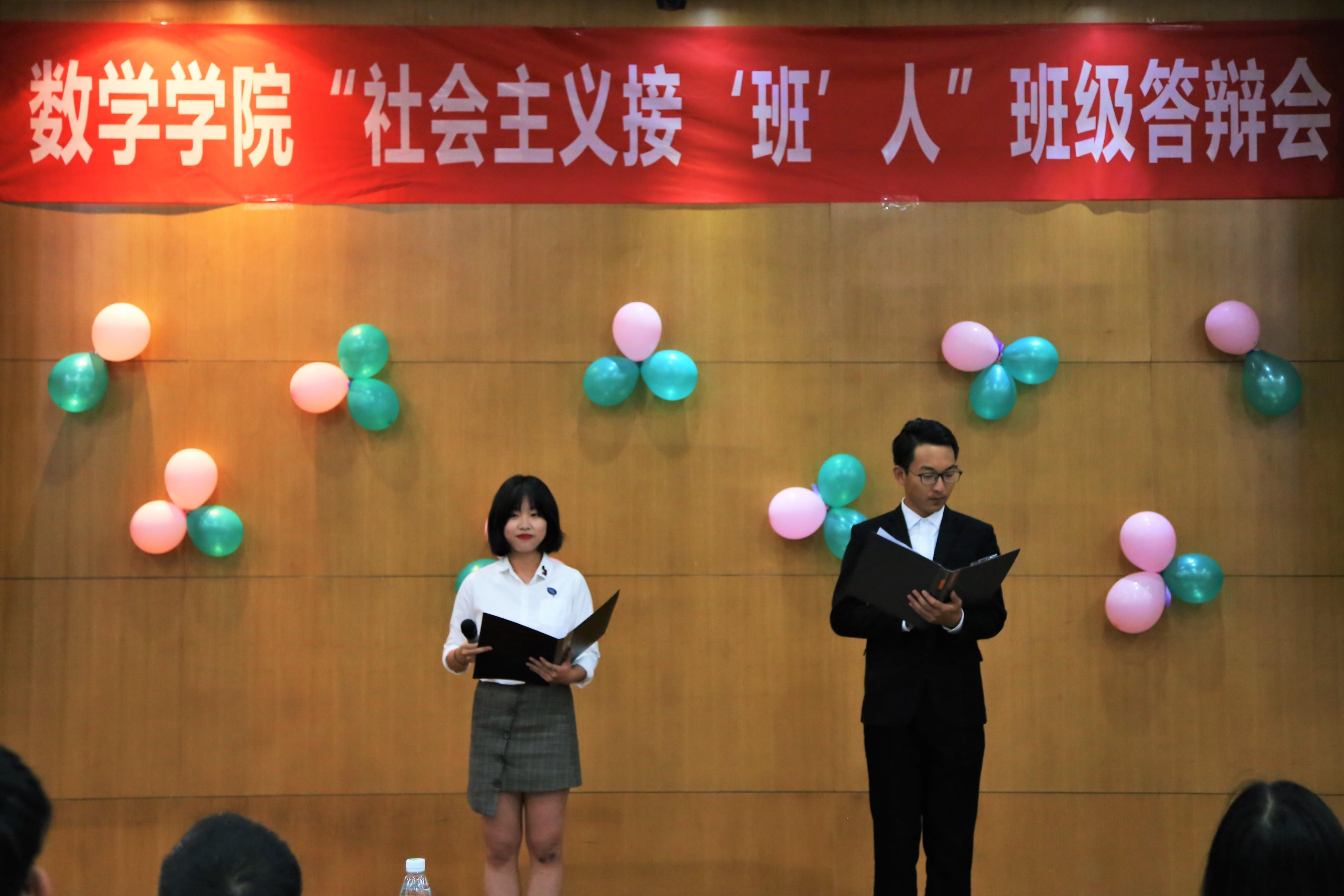 第二个进行答辩的是数学二班,周泽杨同学采用脱口秀的形式,带领观众们走进这个由35位来自五湖四海的同学组成的小家庭。他们灵活创新,他们团结向上,以辩论的创新方式展现可静可动的优秀数学二班。在随后的风采展示中,数学二班填词改编北京东路的日子,温馨地展现了我们可爱的大学生活。“做辛勤耕耘的二班人,做开拓创新的数学人”,他们一直在路上。