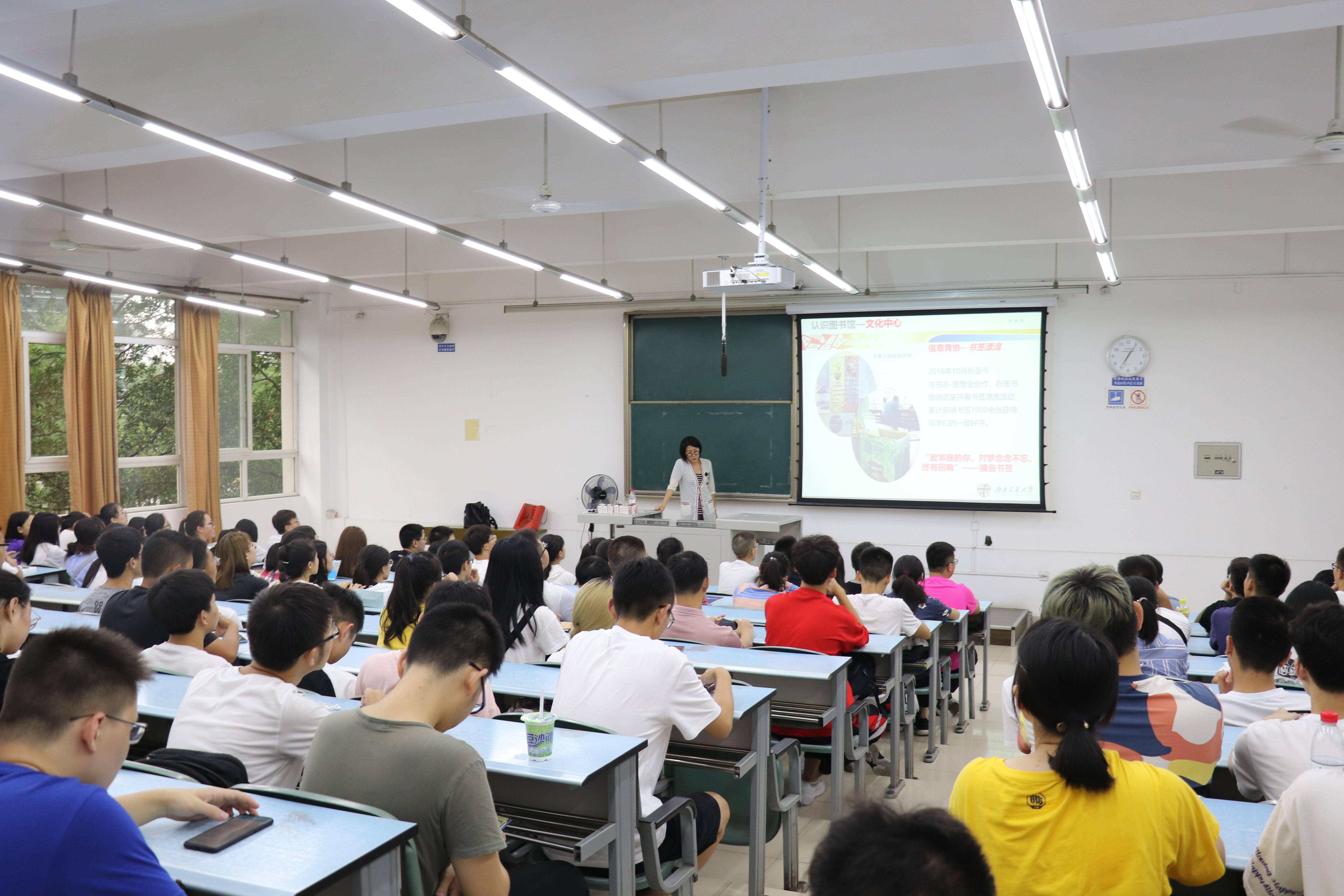 图书馆主讲老师表示图书馆是文化聚集之地,大家应该准确从六方面走进图书馆,认识图书馆。同时,她表示图书馆是文化中心,学习中心,育人中心以及交流中心,大家应当多多去认识图书馆。并且开学会有新生福利,各项吸引新生的图书馆活动都体现出了图书馆文化的丰富性。