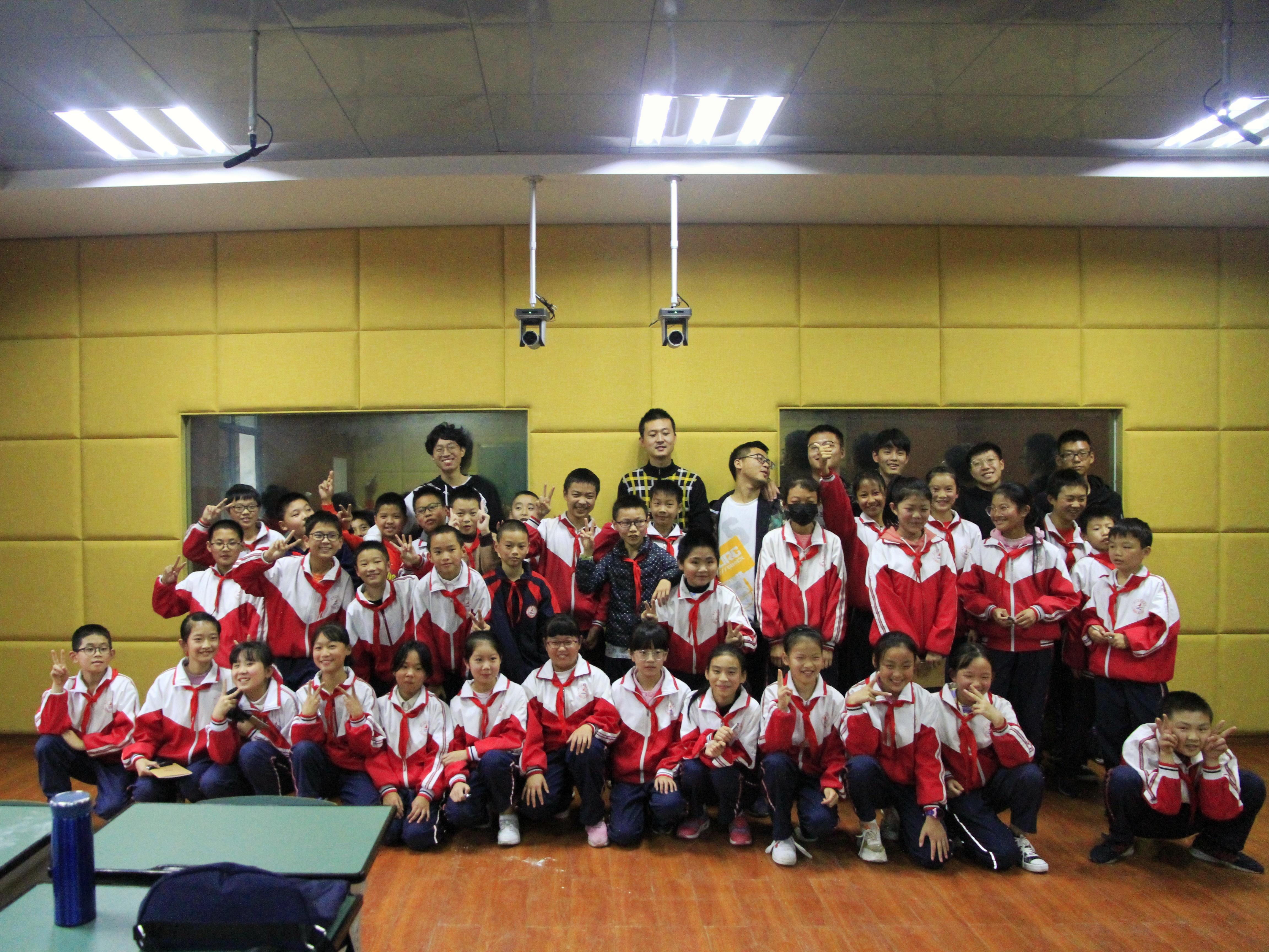 游戏结束,本次宣讲也接近尾声。大数据一班的学生和全体小朋友们在教室后面进行了合影留念。照片中的同学们的笑容是如此的灿烂,也希望他们在之后的求学道路上能一直保持微笑。