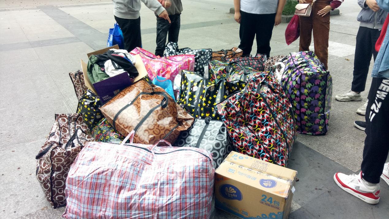 11月7日和11月8日晚上9点至10点,志愿者们带着编织袋开始了接收衣物之行。同学们为了方便志愿者们收集衣物,将自己的衣物提前用纸箱装好放在门口。虽然提着编织袋不停地穿梭在宿舍楼之间身体会有些疲惫,但是看着那逐渐被衣物装满的袋子,大家心里充满了动力。衣物收集工作结束后,志愿者们将衣物统一放于一处进行保管。