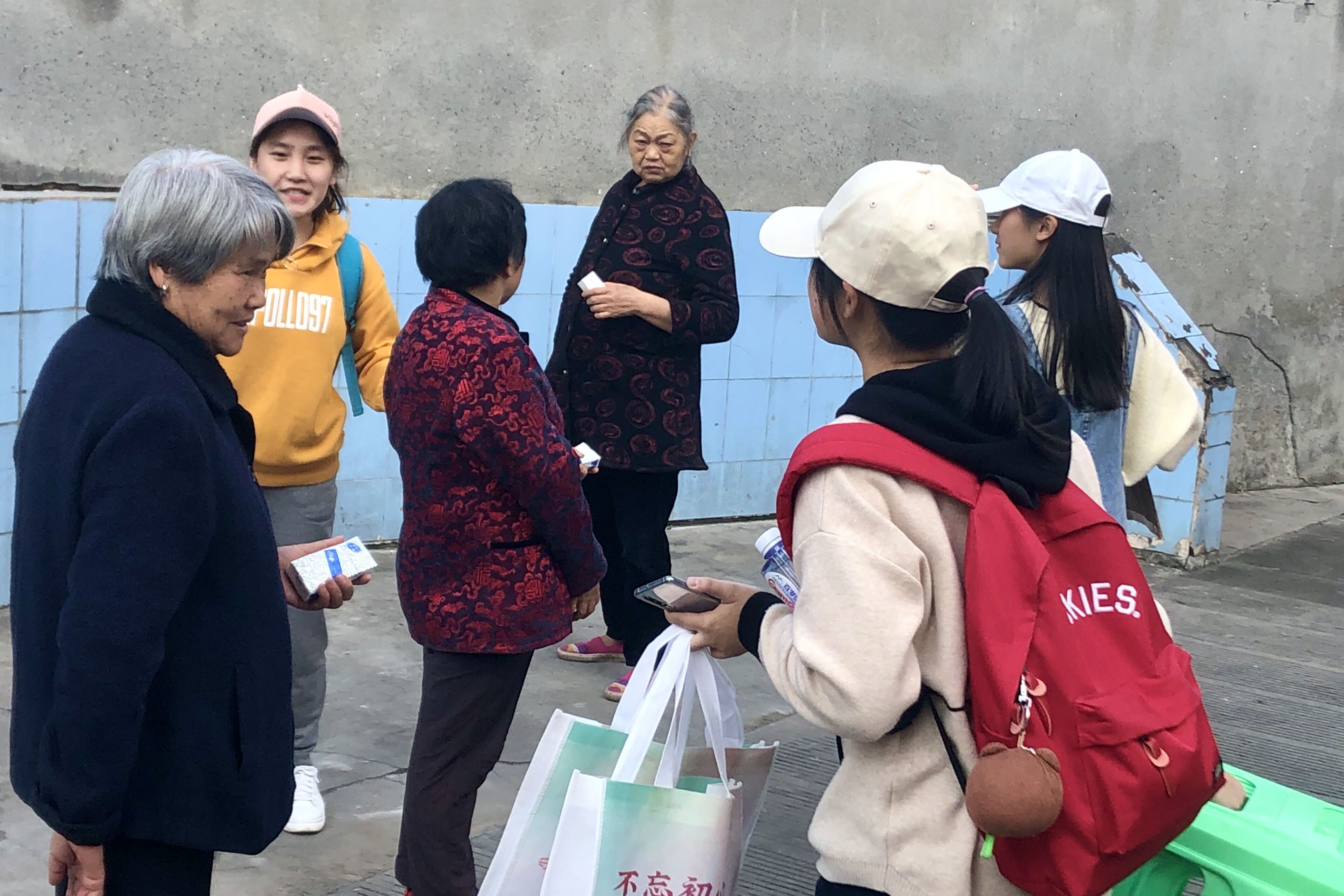 2019级拔尖班全体成员安全到达岷江社区,开展了为时两个小时的公益活动。团委书记邓思然老师、辅导员张洋老师、院团委部长参与并开展名为“青春志愿,爱在社区”的社区走访活动。在同学们到达之前,活动小组已将本次活动所需要的桌椅,讲稿以及带给居民的实惠福利等物品备齐。同学们一到达社区,就吸引了部分居民前来询问。拔尖班的志愿者们耐心地为他们讲解活动目的和活动形式,在简短的准备之后,本次活动正式开始。