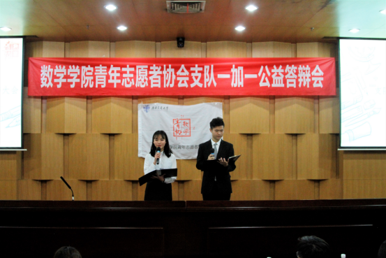 青年志愿者协会主办的“识数,索益”支队1+1公益答辩活动在我校图书馆二号报告厅顺利召开。本次活动共有6支队伍参与,并由成人直播
