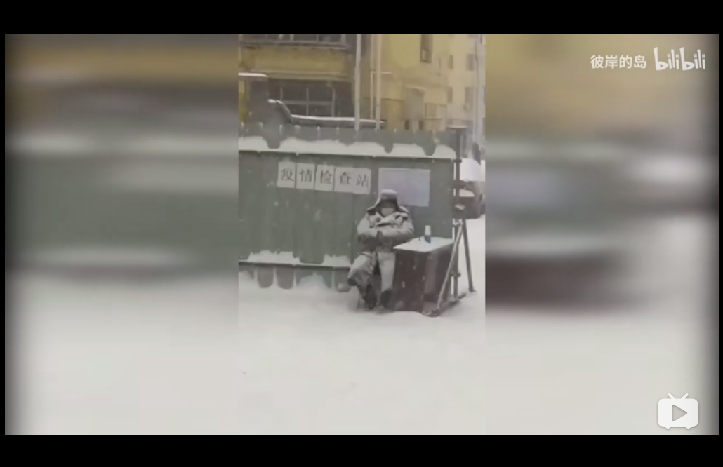 然后,团支部书记闫宇汉为大家播放了视频《疫情十大感人画面》。视频中既有功勋人物的为国为民,又有位于基层的平民英雄的无私奉献。其中,令大家印象最为深刻的是一位在社区工作的老大爷,在风雪中,老大爷为了阻止外来人员进入社区、保护社区居民的生命安全,身体几乎被大雪覆盖,与白茫茫的世界融为一体。