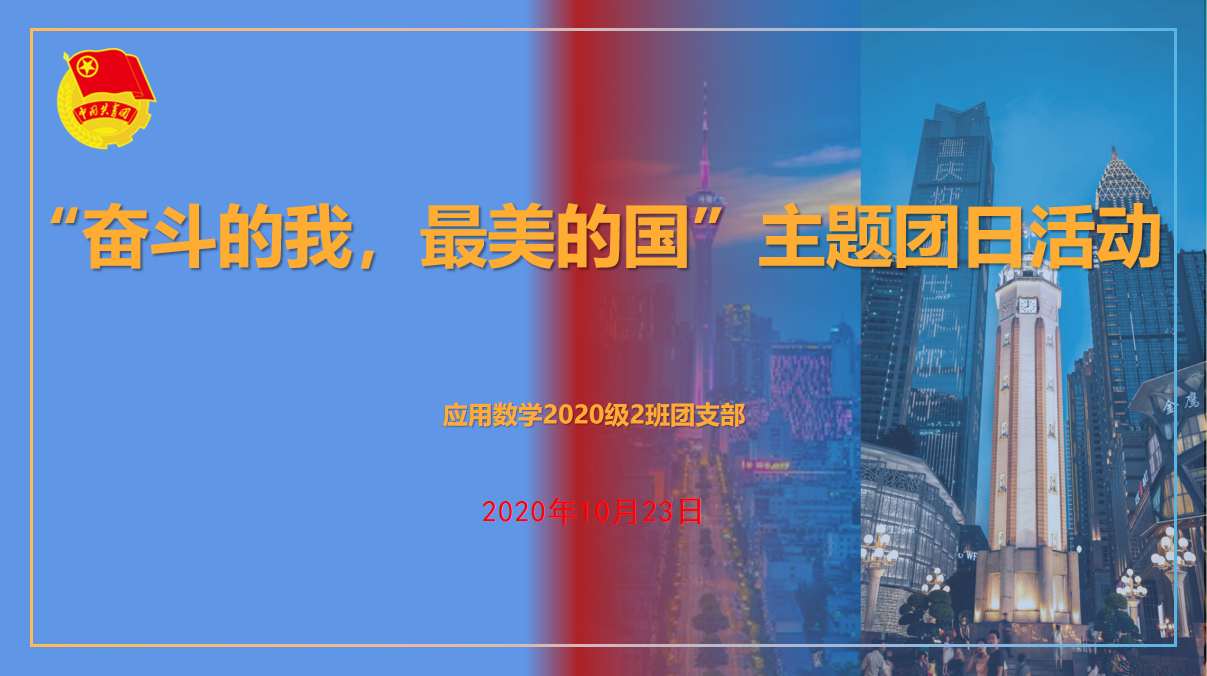 为深入宣传学习国家功勋模范人物、新时代楷模和战“疫”平民英雄,引导支部共青团员把自己的理想同国家的理想、把自己的人生同民族的命运紧密联系在一起,担当时代责任、勇于砥砺奋斗、练就过硬本领。应用数学2020级2班团支部于10月23日10:10以视频会议的形式,开展了“奋斗的我,最美的国”主题团日活动。本次团课由团支部书记闫宇汉主持,团委实践部副部长懂欢宁参加,支部28名团员按时参与。