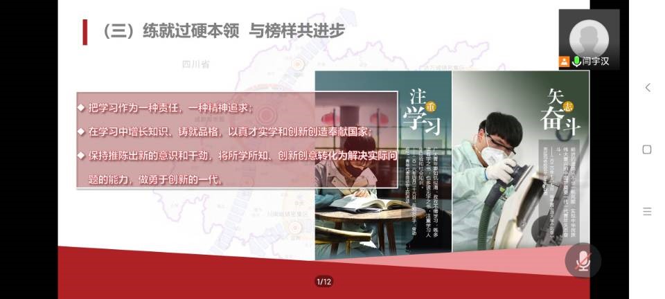 接着,团支部书记闫宇汉为大家介绍了全国抗击新冠肺炎疫情表彰大会的具体内容,弘扬了生命至上、举国同心、舍生忘死、尊重科学、命运与共的伟大抗疫精神,向各位共青团员展现了中国精神、中国力量、中国担当。