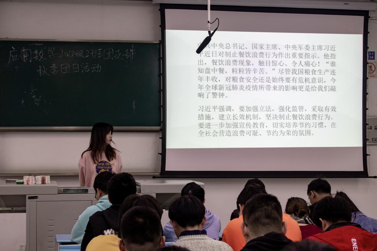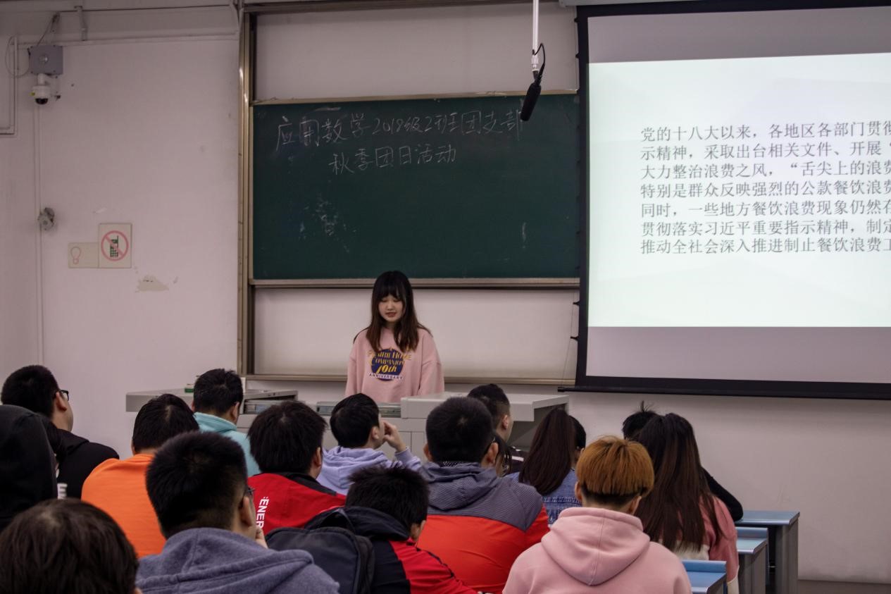 应用数学2018级2班团支部于2020年10月24日下午5:00于X2532开展了以“厉行节约,反对浪费”为主题的团日活动。参加此次活动的有数学二班团支部所有团员和成人直播