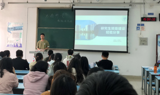 第二位带来班级建设经验分享的是谢健祥学长。谢健祥学长作为忠忱班集体数学2019级硕士班的班长,开展过丰富多彩的班团活动,学长从班级的思想政治建设、学风建设、文体建设以及事务管理的角度出发,分享了如何开展班团活动、调动同学们积极性和增强班级凝聚力的宝贵经验。