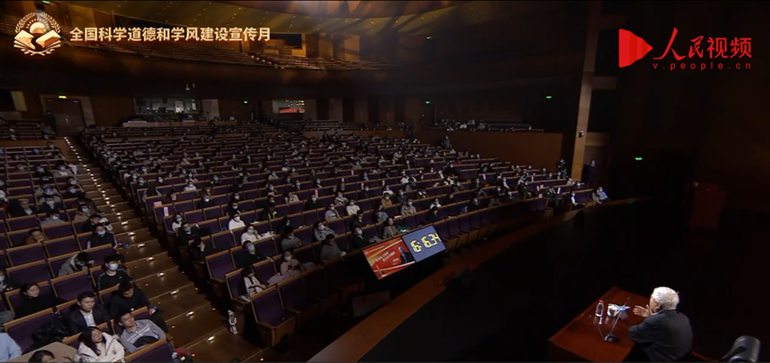 报告结合樊锦诗、戚发轫两位专家自身科研实践和学术成长经历并围绕报告会主题展开,着重向青年学子讲授如何自觉践行和大力弘扬爱国、创新、求实、奉献、协同、育人的科学家精神,加强科学道德和学风建设,立鸿鹄志,做奋斗者,为实现“两个一百年”奋斗目标、实现中华民族伟大复兴的中国梦而不懈奋斗。