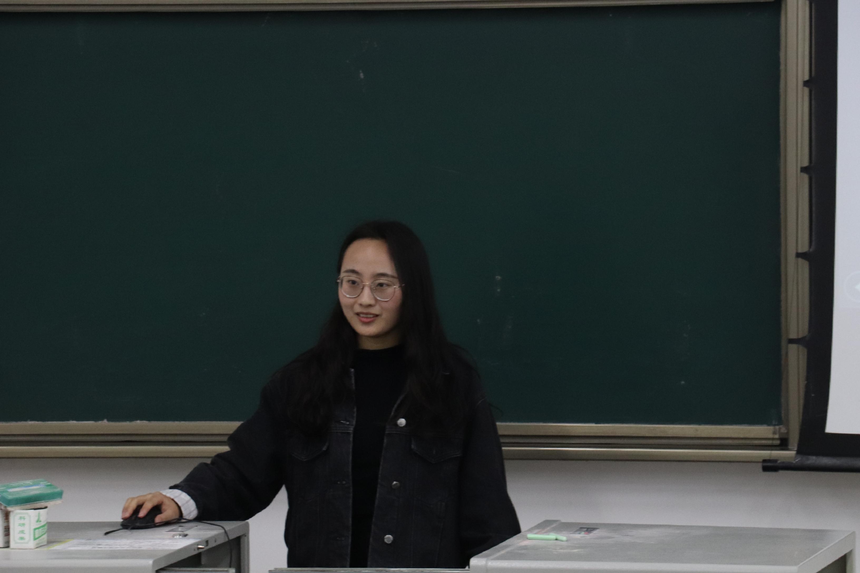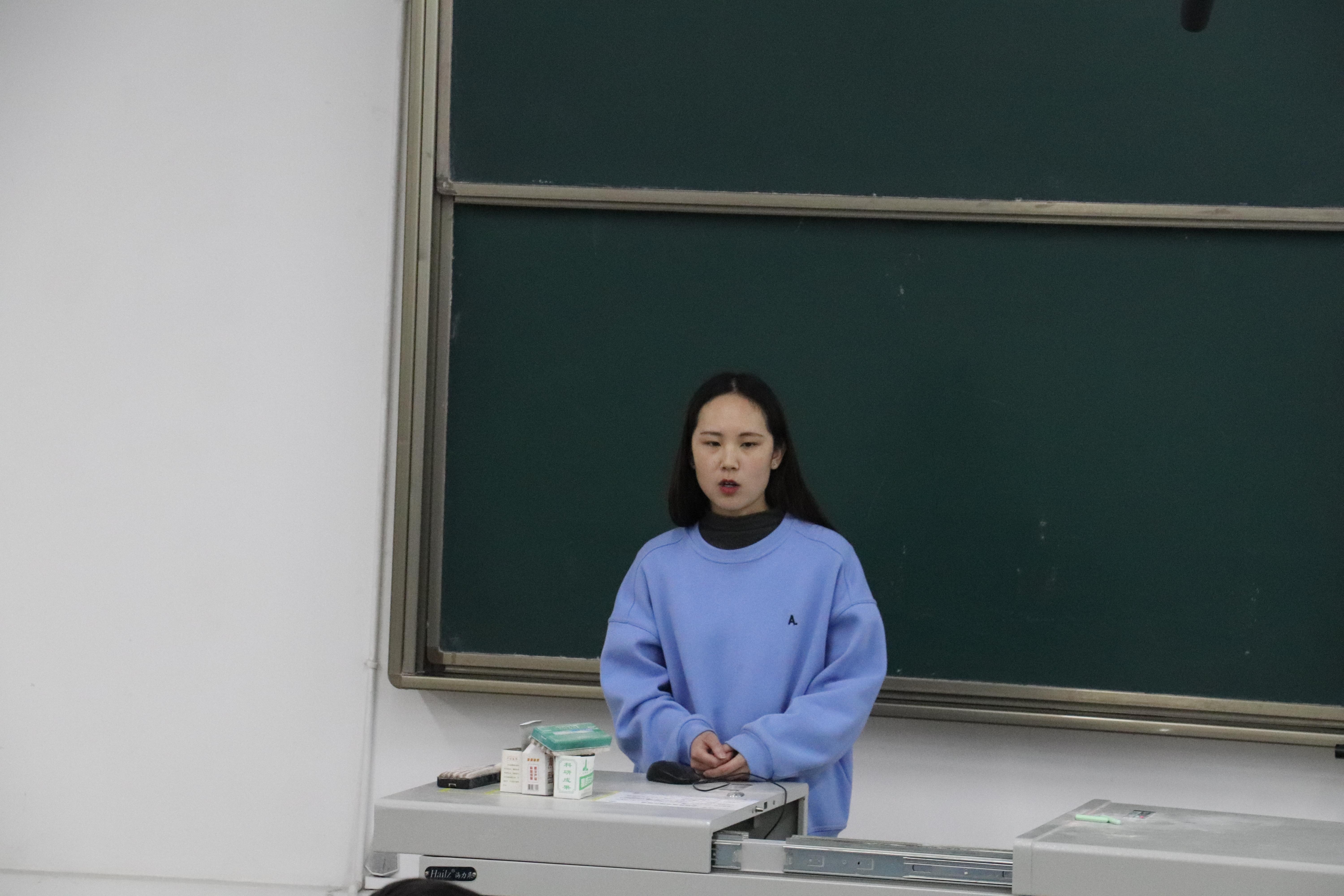 首先上台的是赵宜婵同学,她为同学们带来生物统计方向的介绍。她分别阐述了生物统计的主要内容和研究方向,如生存分析、纵向数据分析、临床试验设计、统计遗传学等,并讲解了所用软件、学习R语言的推荐书目等。最后指出,生物统计的就业前景十分广阔,毕业生可以进入公司、医院或科研机构等。