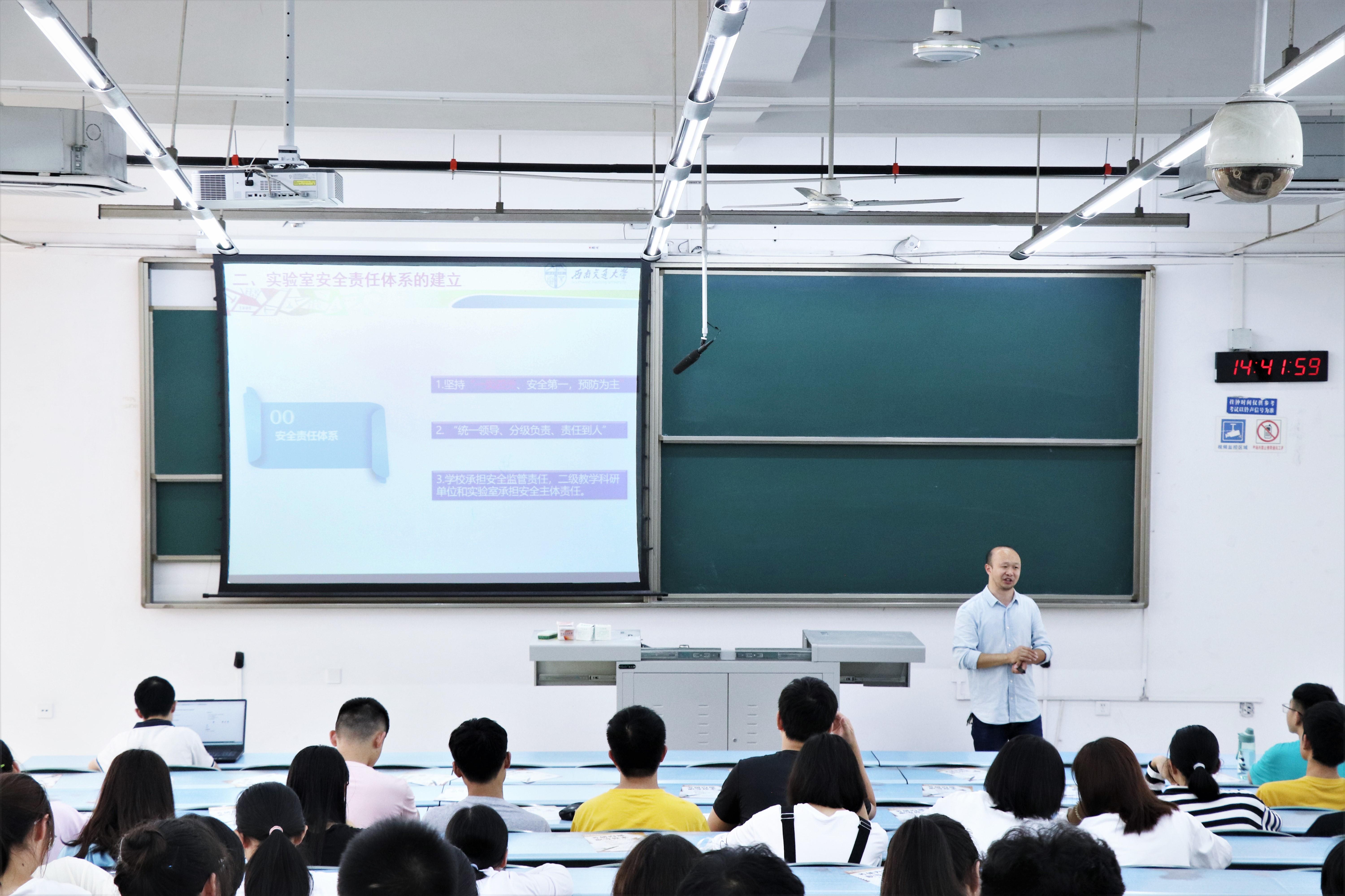 首先,潘老师强调了实验室的重要性,并对校园实验室安全的基本要求做了讲解。实验室的建设程度体现着一所工科学校的综合水平,实验室也是师生进行学习与实践,教学与科研的重要场所。同时,他列举了其他大学因为实验安全管理不当而引发的悲剧,强调了实验室安全的重要性。随后潘老师对实验室安全责任体系进行了介绍,把从学院到导师再到学生自身的要求与责任进行了一一讲解,提出要落实“统一领导,分级负责,责任到人”的理念。