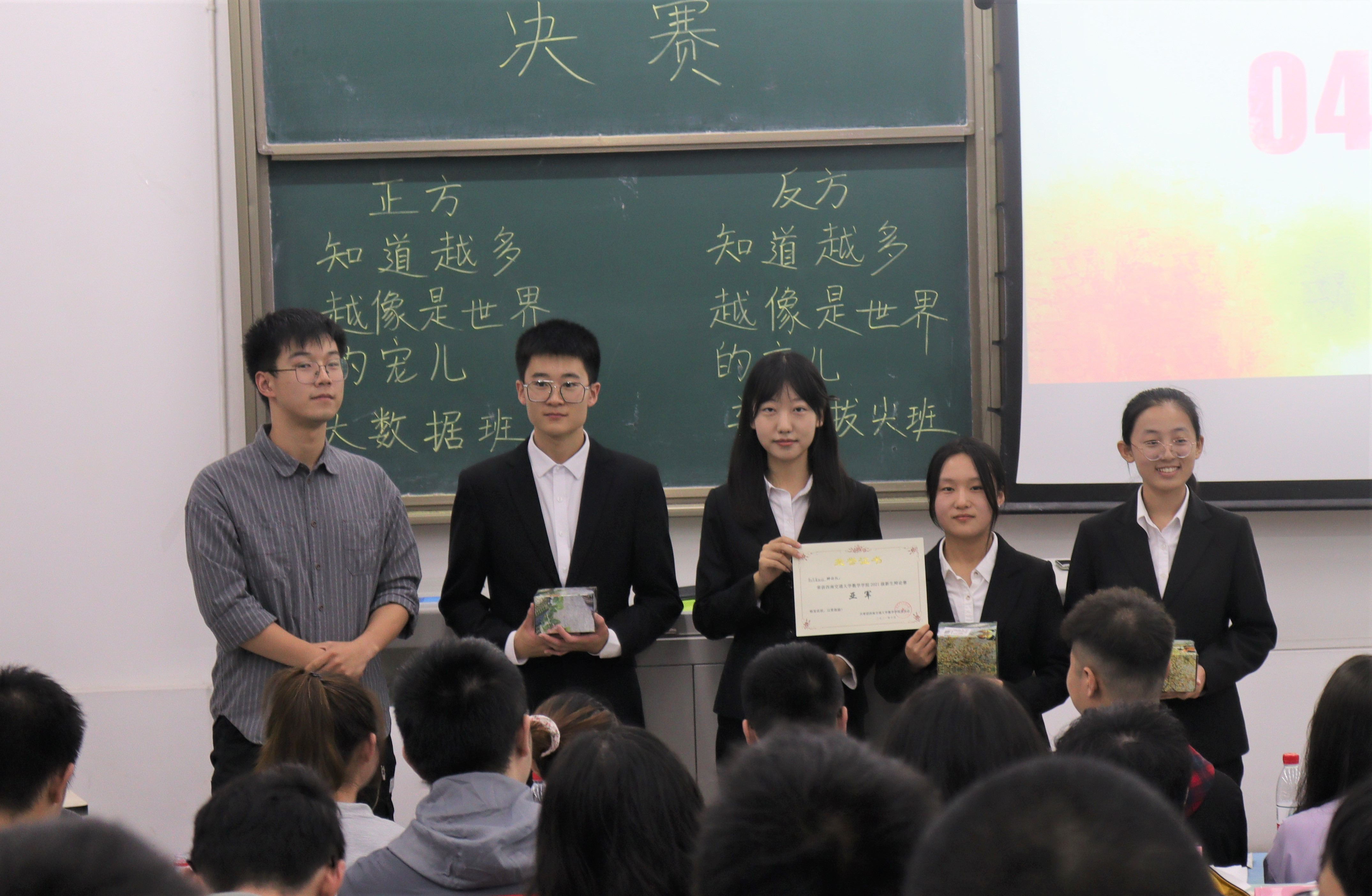 此次比赛的辩题为“知道越多越像是世界的宠儿/弃儿”。正方为大数据一班代表队的王泰桦、岳思毅、张哲、甄佳宇,反方为数学基地班代表队的马万里、张琮琪、朱纯雨、杨婧悦。