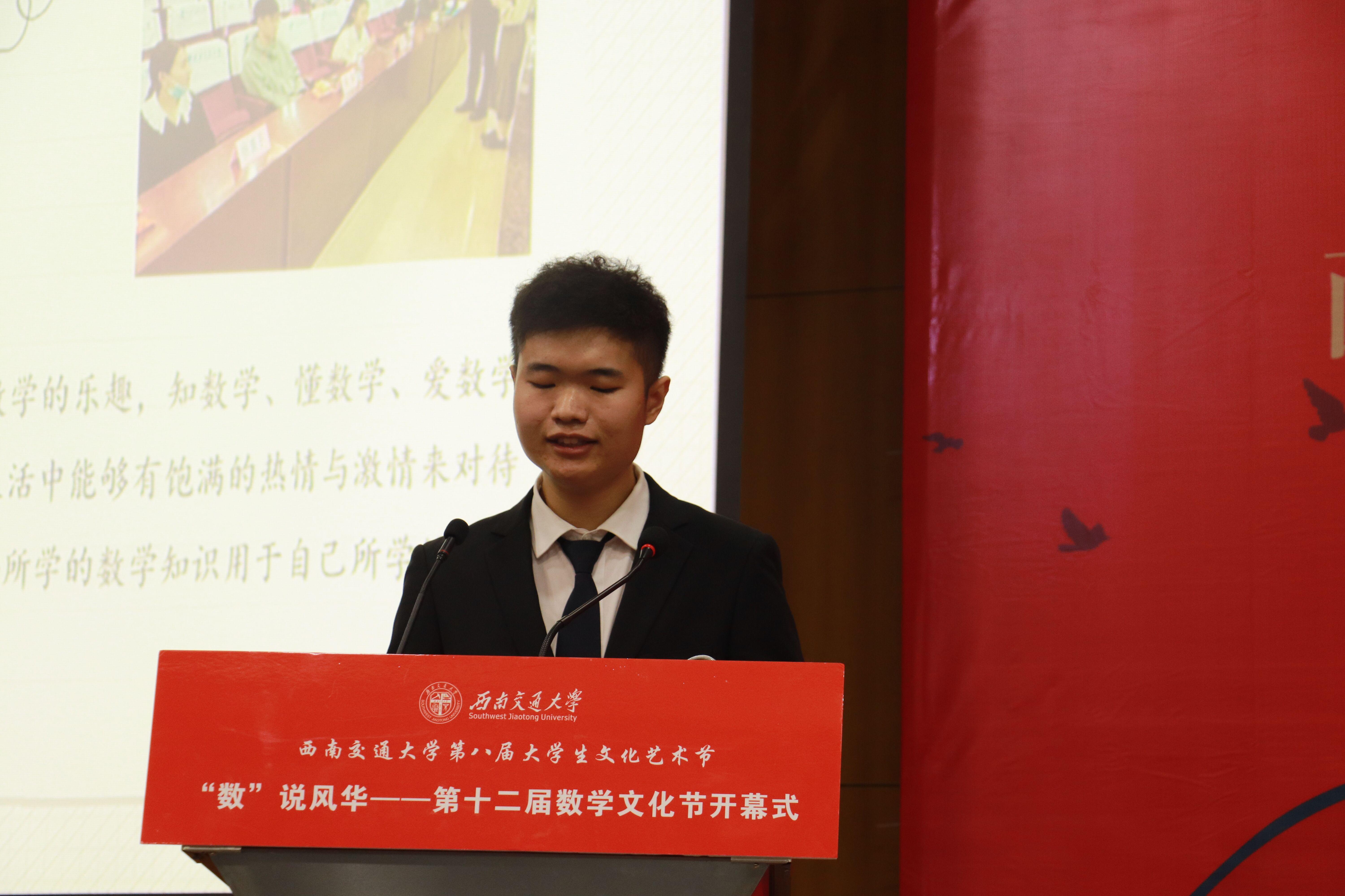 学生会主席团成员赵汉林为大家进行数学文化节往期成果展示及本届活动的介绍,展示数学文化节的前世今生。他指出,数学文化节是成人直播