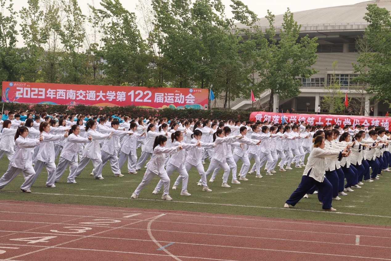 第122届运动会暨2023年“健康月”活动正式开幕。开幕式表演以极具中国特色的武术、舞狮、太极拳为主,充分展现了交大学子积极昂扬的精神风貌。