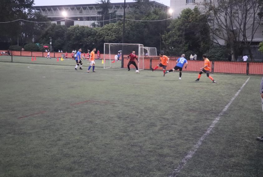 本场比赛,小π来到现场,记录了这场1/4决赛的精彩瞬间。上半场比赛第25分钟,身披8号战袍的队长彭皓老师以一记精准的射门直挂球门死角打破僵局,帮助成人直播