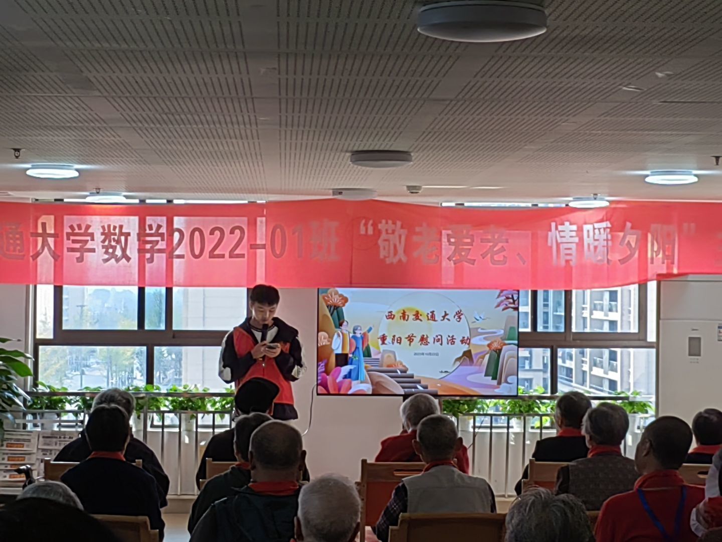 尊老敬老是中华民族的传统美德,为了让大学生深入了解社会现状,培养大学生乐于奉献,服务社会、回馈社会的积极人生观,弘扬中华民族传统美德,10月22日,在重阳节来临之际,数学2022-01班全体同学前往位于武侯区的金熙福万寿颐养中心开展尊老爱老相关的志愿服务。