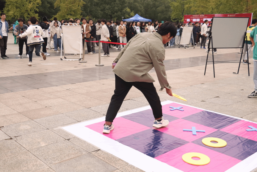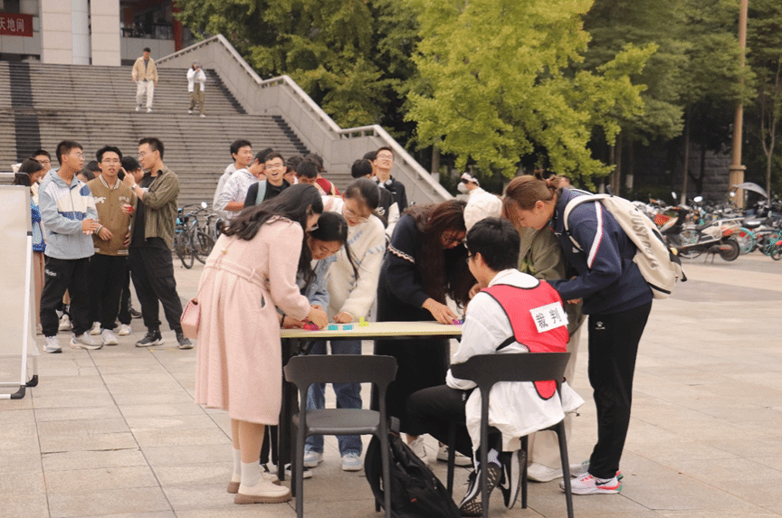 从单枪匹马到团队配合、从桌面游戏到沉浸体验、从课本知识到运筹帷幄,本次游园活动相比于往年进行了融合创新发展。活动场地分为四个区域——签到区、趣味游戏区、智慧答题区、抽奖兑换区。其次活动参与形式也全面升级,由原本的单人闯关改为三人组队参与。同时今年的游园活动采用积分抽奖制度,通过积分个数进行抽奖并现场兑奖。